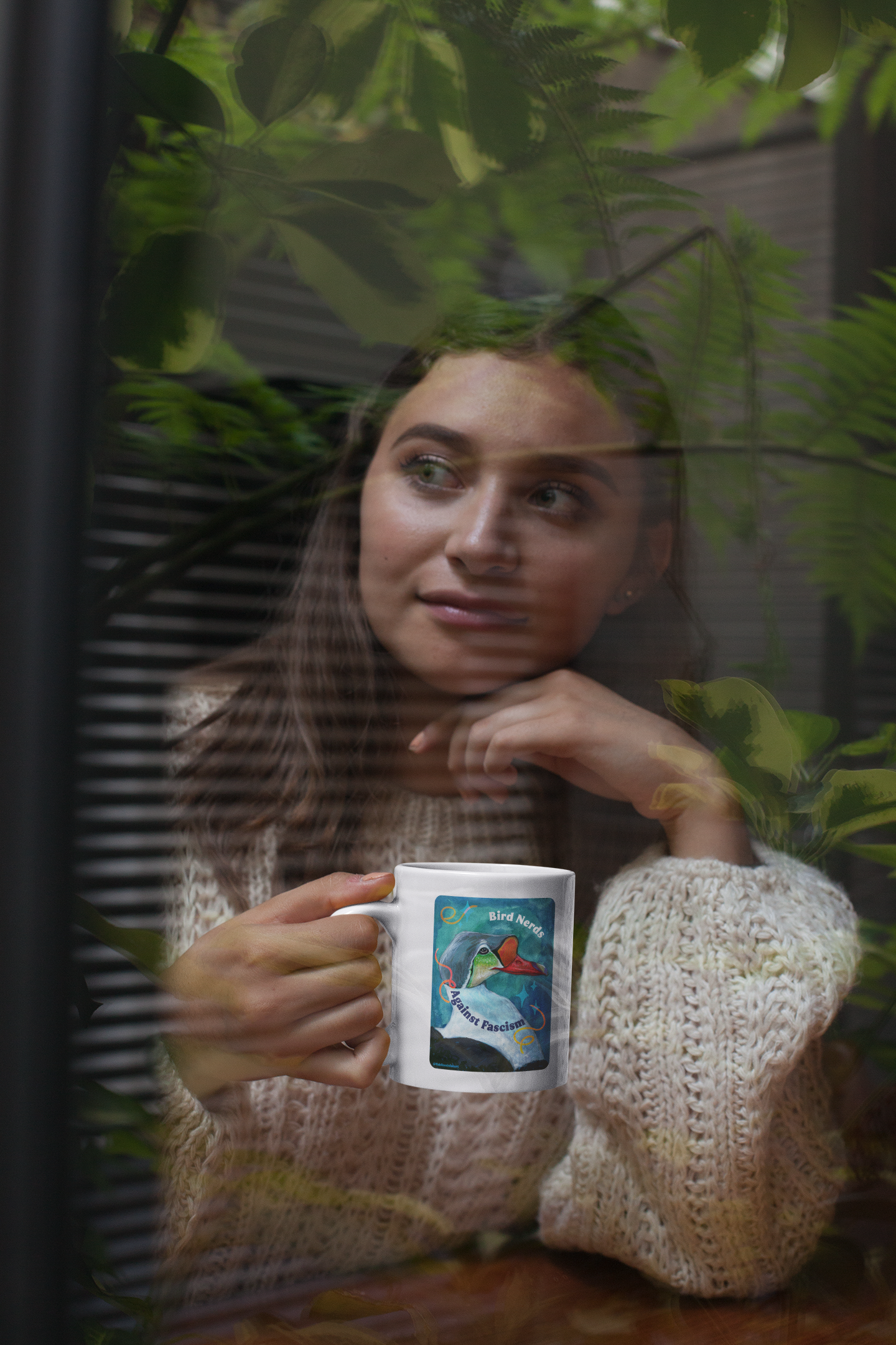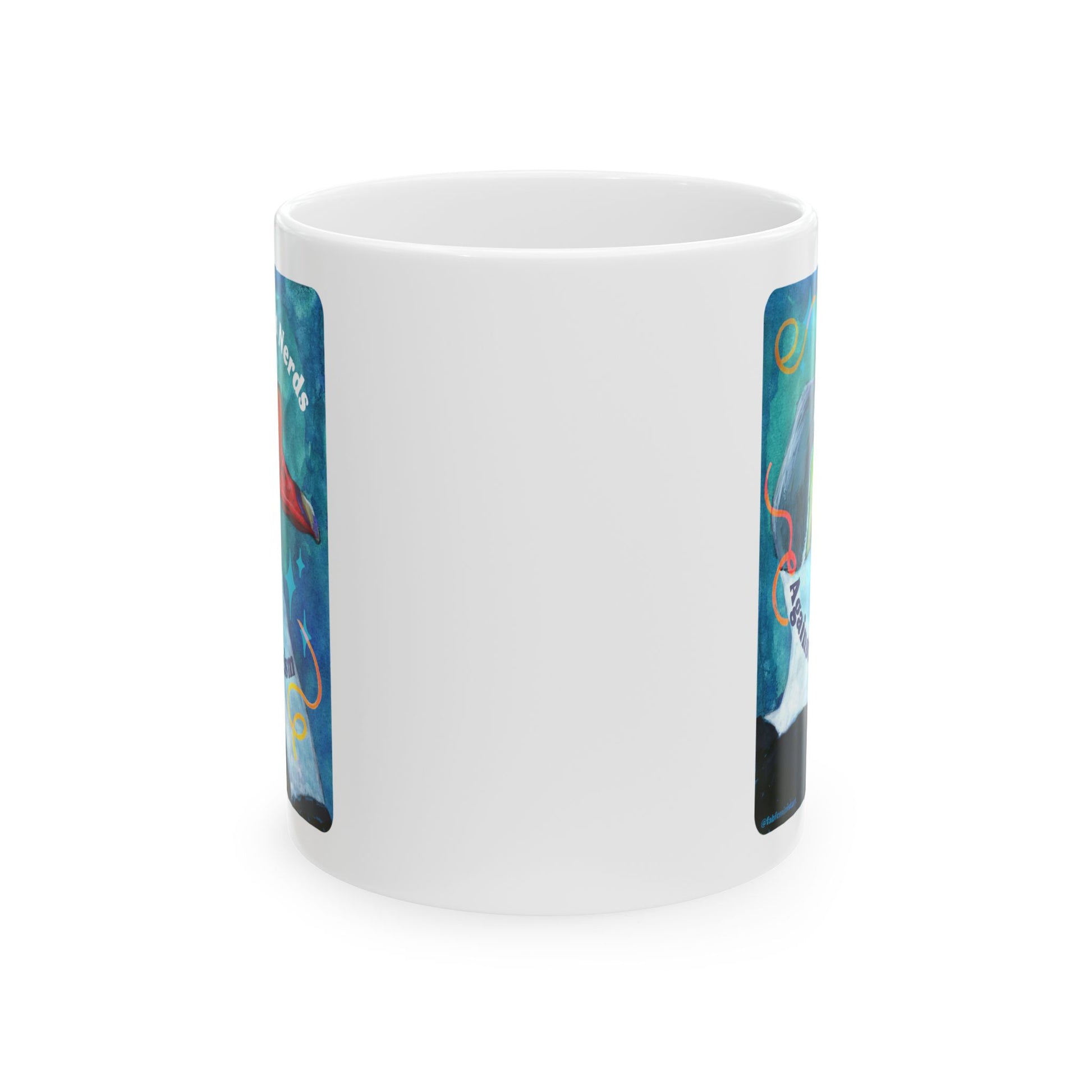 A glossy ceramic mug that brings a splash of color and wonder to your morning ritual. The artwork wraps gently around the white surface, letting vivid blues and bright accents pop against the clean background. It feels sturdy in the hand thanks to the comfortable C-shaped handle and a weight that speaks of quality. Heat-safe and dishwasher-ready, it moves with your day — from quick reheats in the microwave to relaxed sips at the sink. Lead- and BPA-free materials make it easy to enjoy every cup with confidence. Available in two sizes to match a solo espresso moment or a slow, comforting brew.