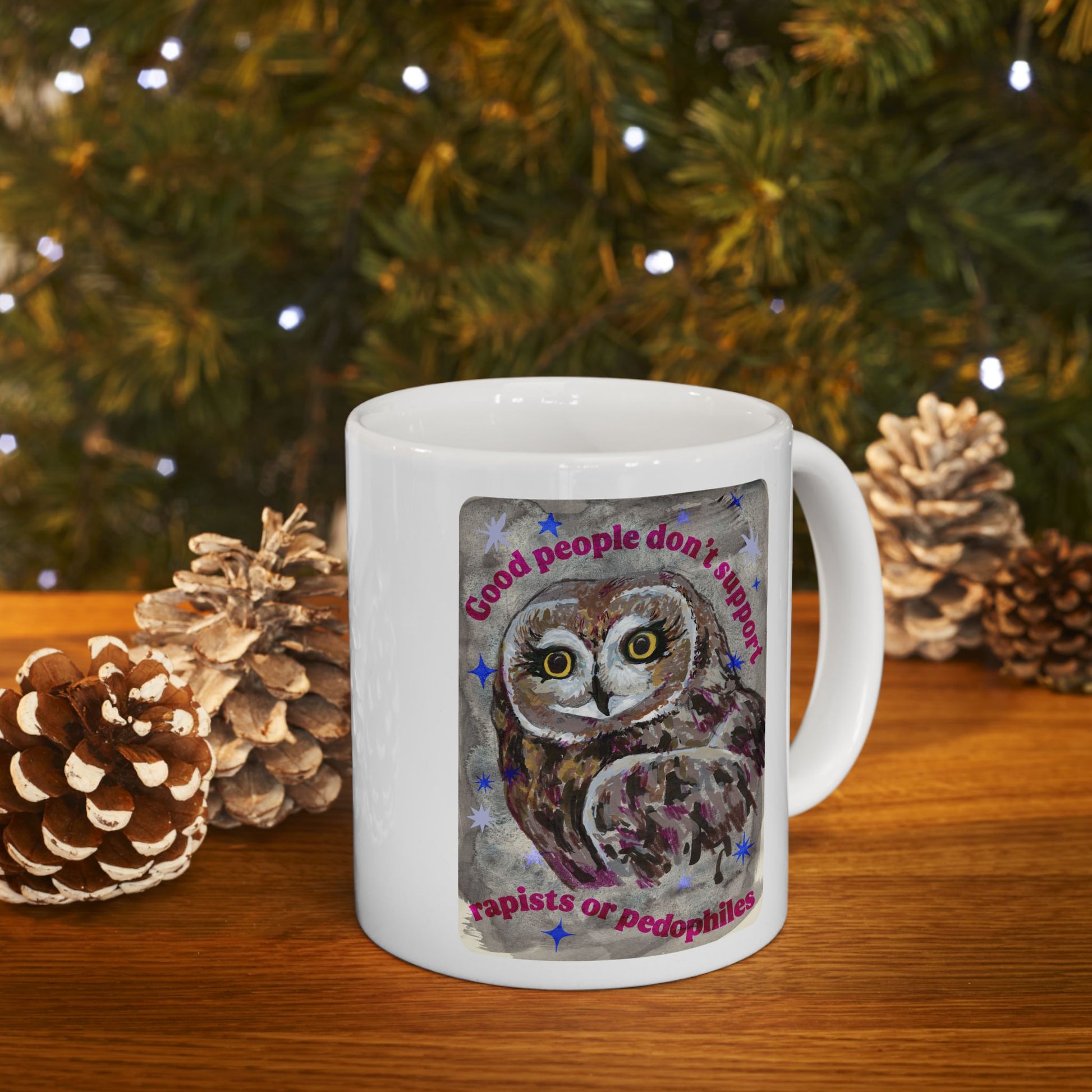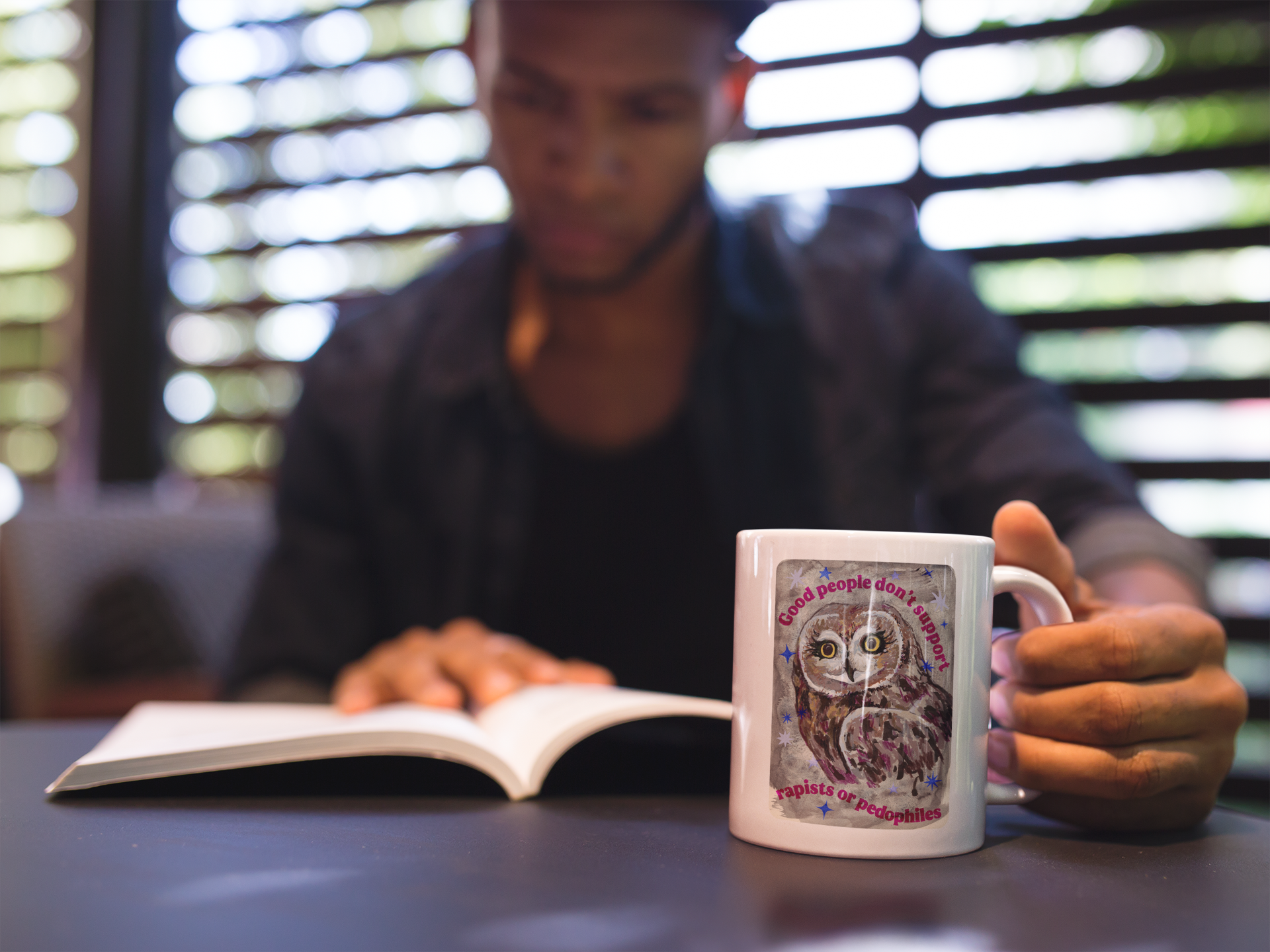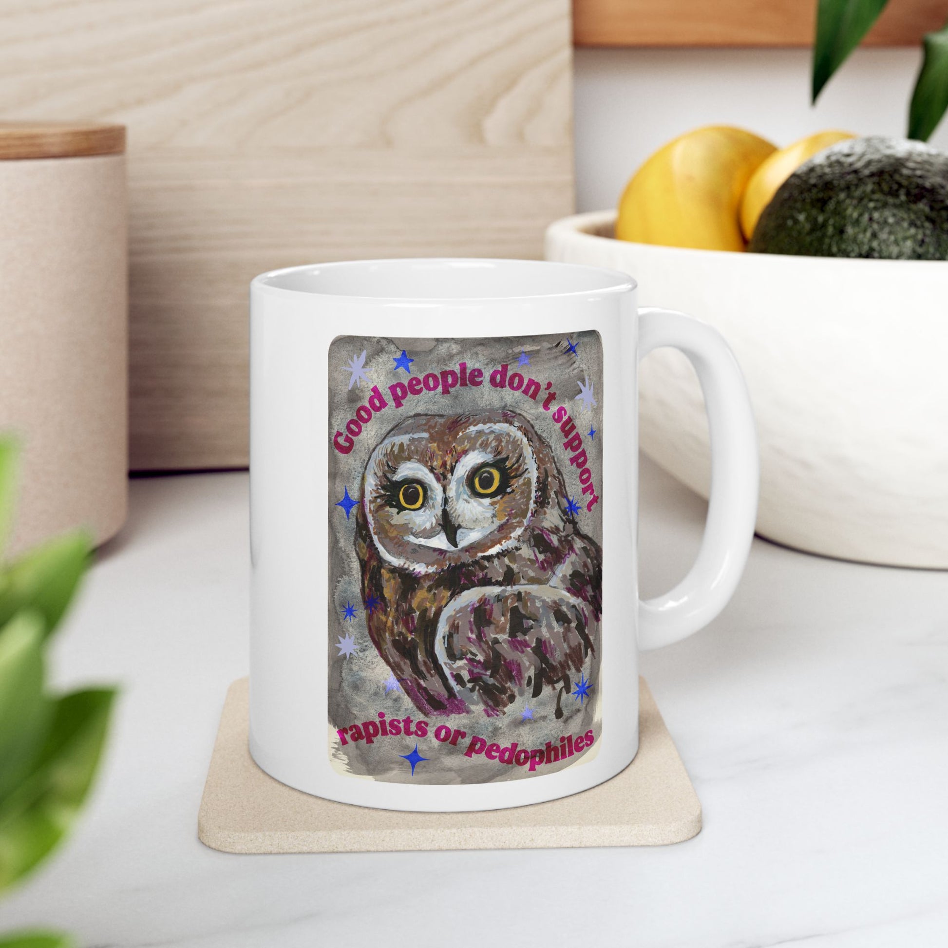 This glossy ceramic mug brings a touch of personality to your everyday routine. Printed using vivid, long-lasting inks, the design wraps around the white surface with clear, vibrant color that resists fading. Comfortable to hold with a classic C-handle and available in two sizes, it’s built for daily use — microwave- and dishwasher-safe, and made from lead- and BPA-free ceramic. Use it for morning coffee, late-night tea, or as a small keepsake that adds character to a familiar corner of your home.