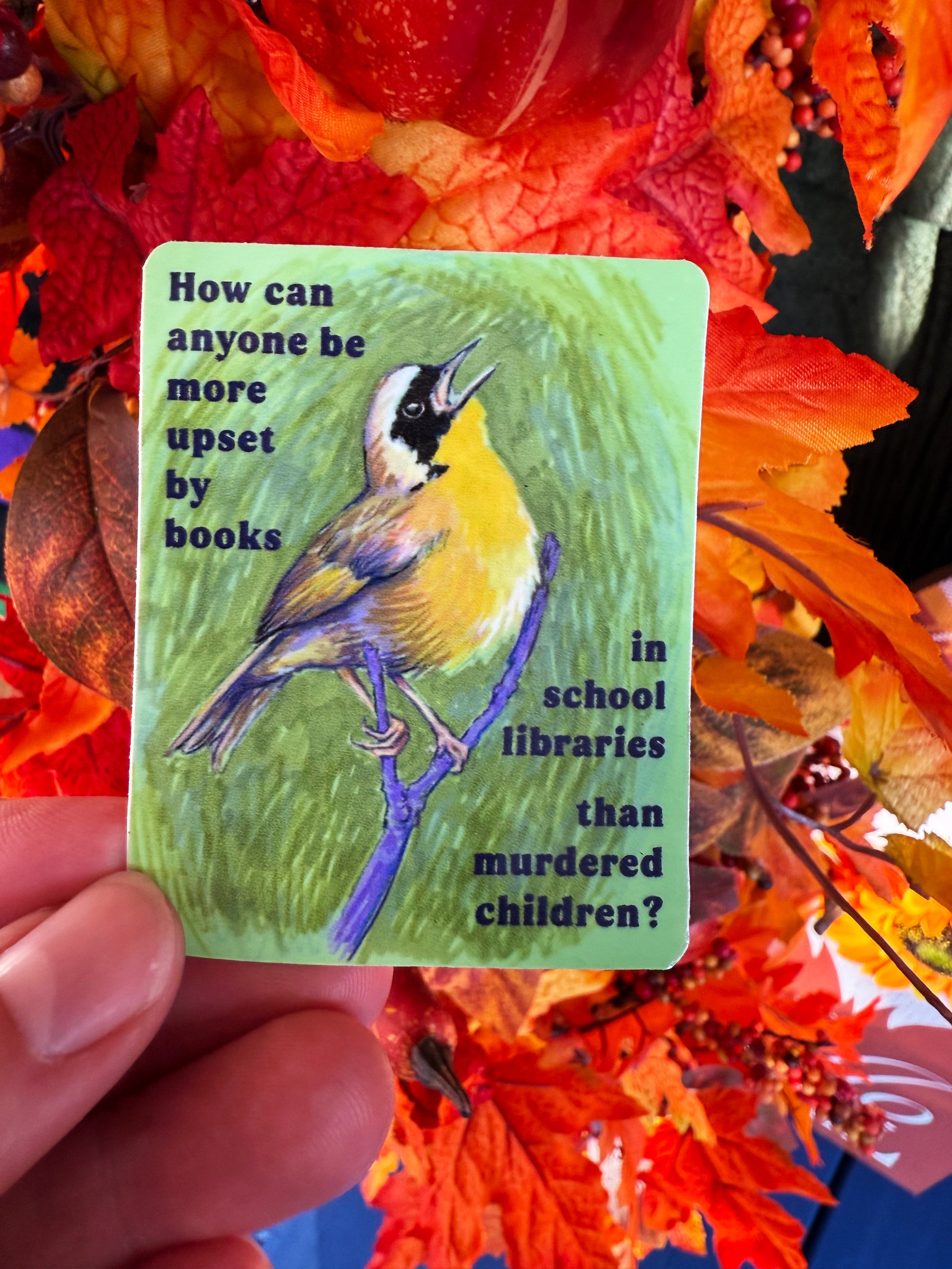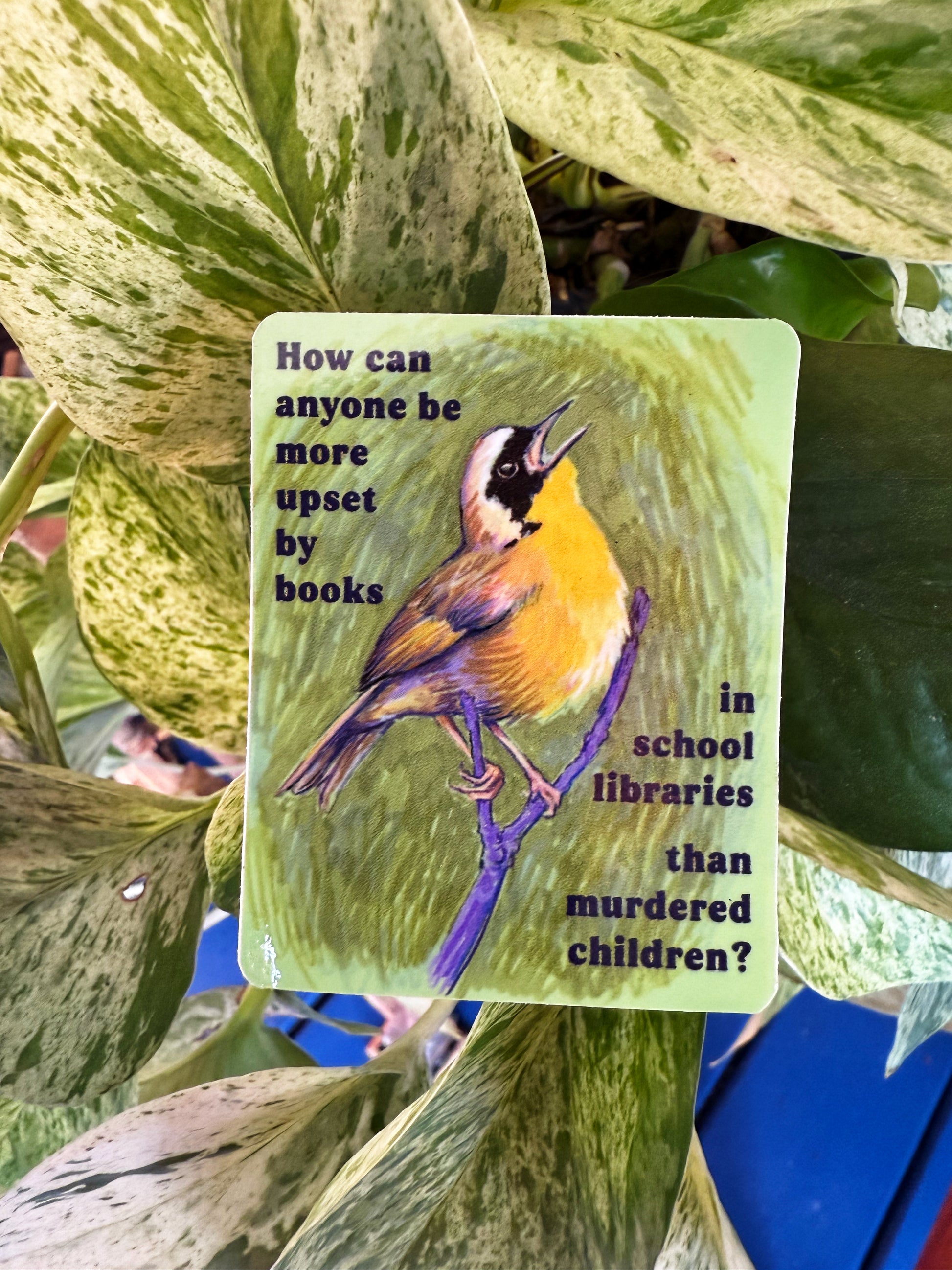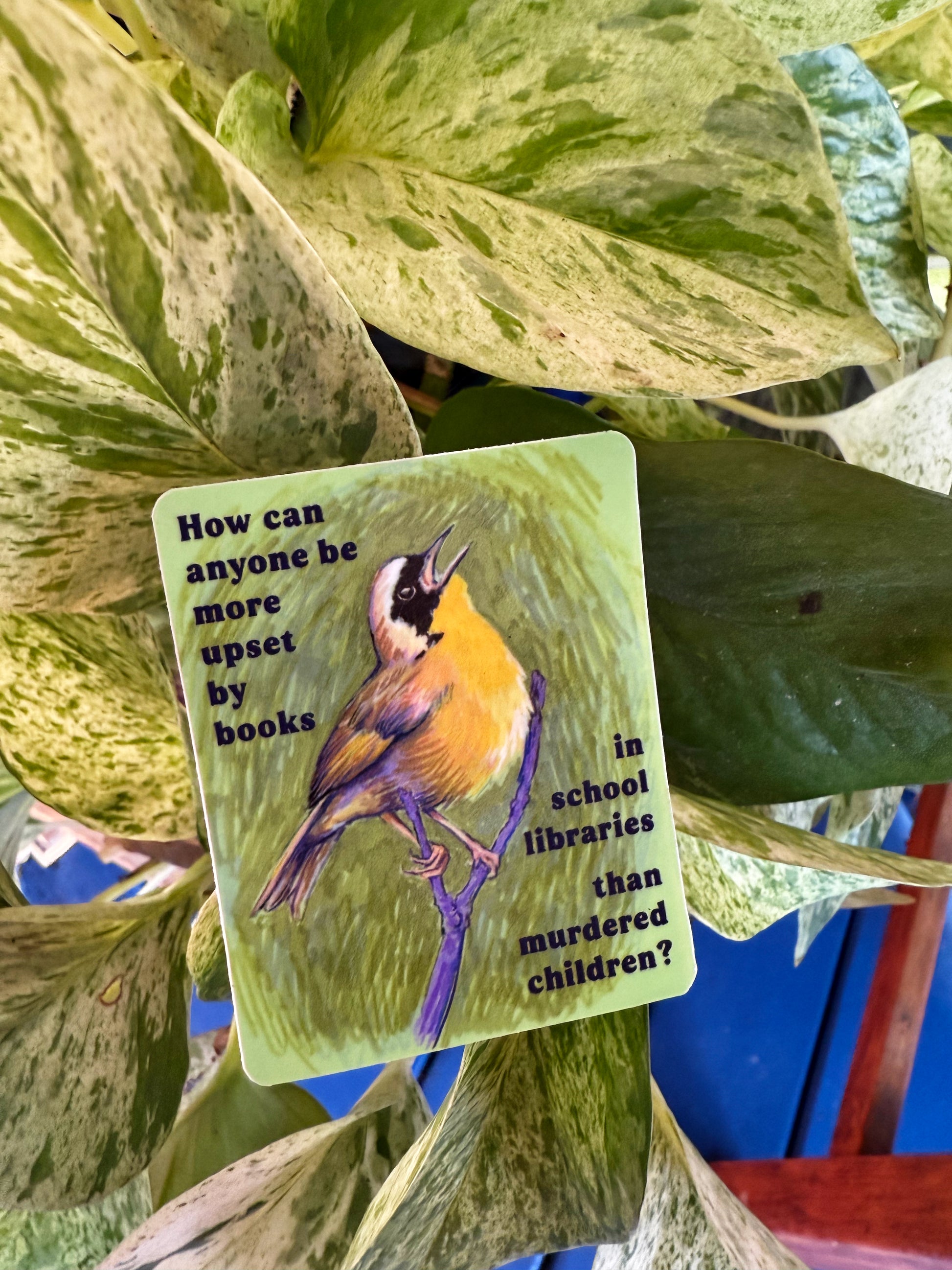How can anyone be more upset by books in school libraries than murdered children: Feminist sticker