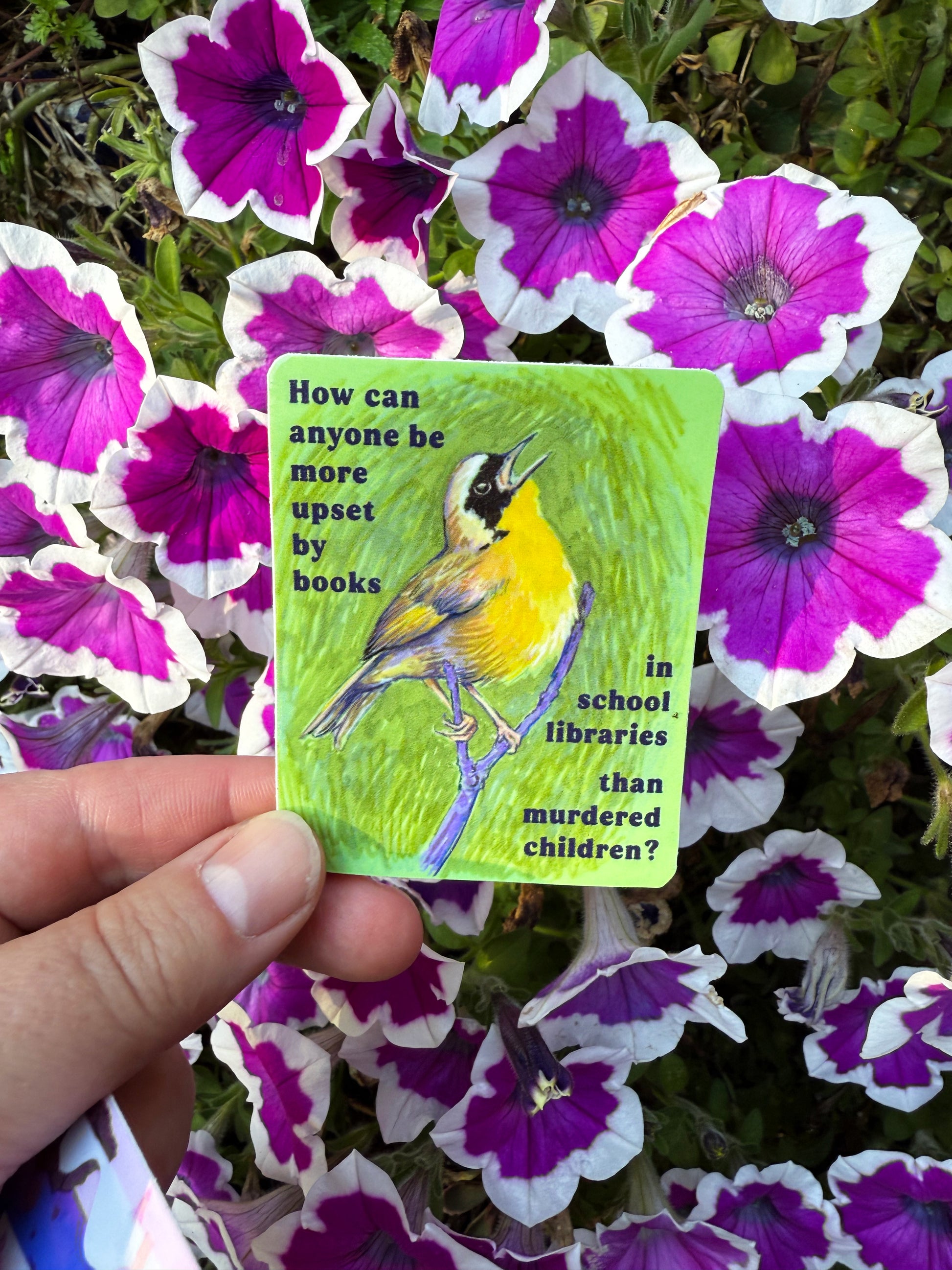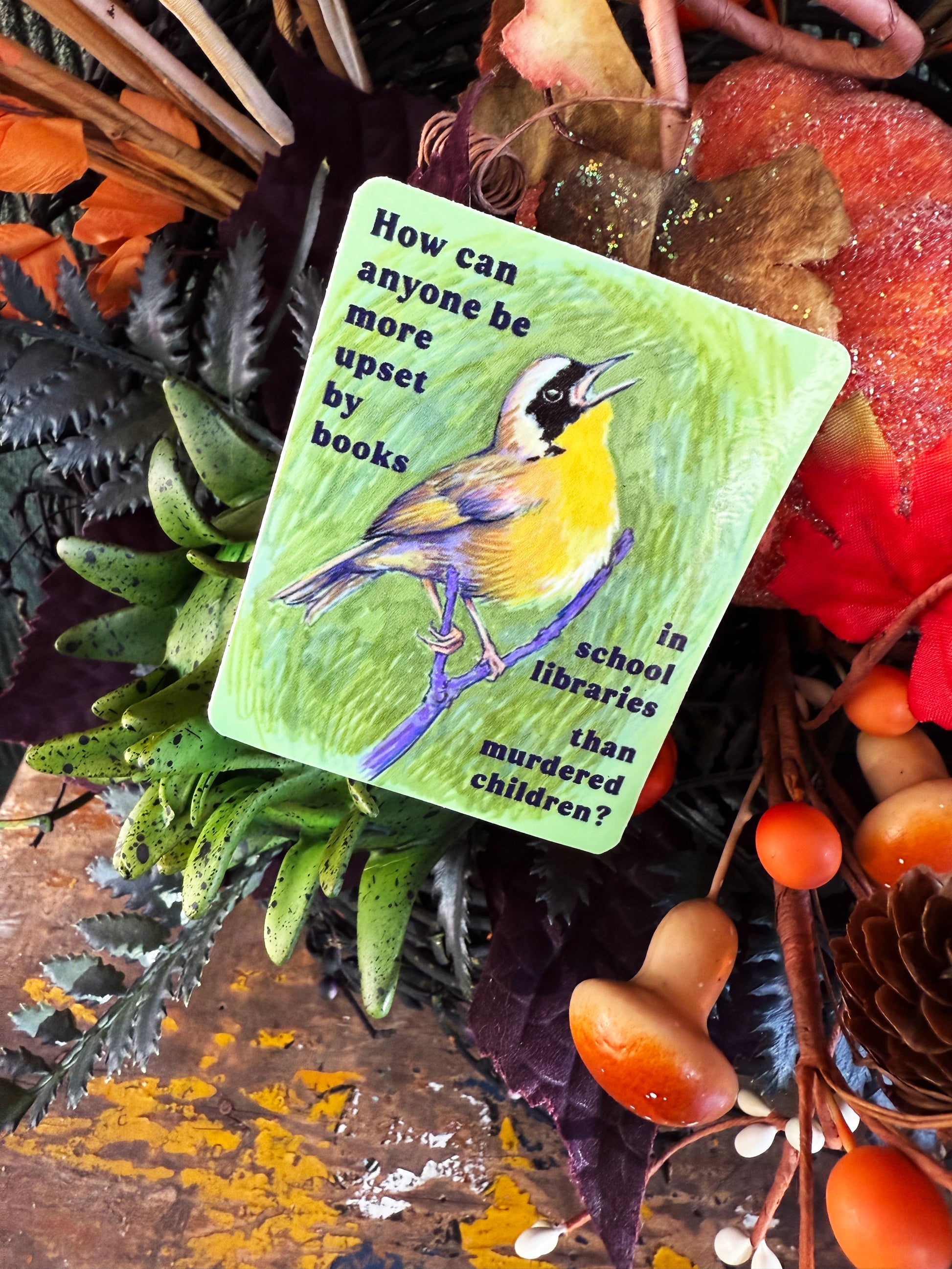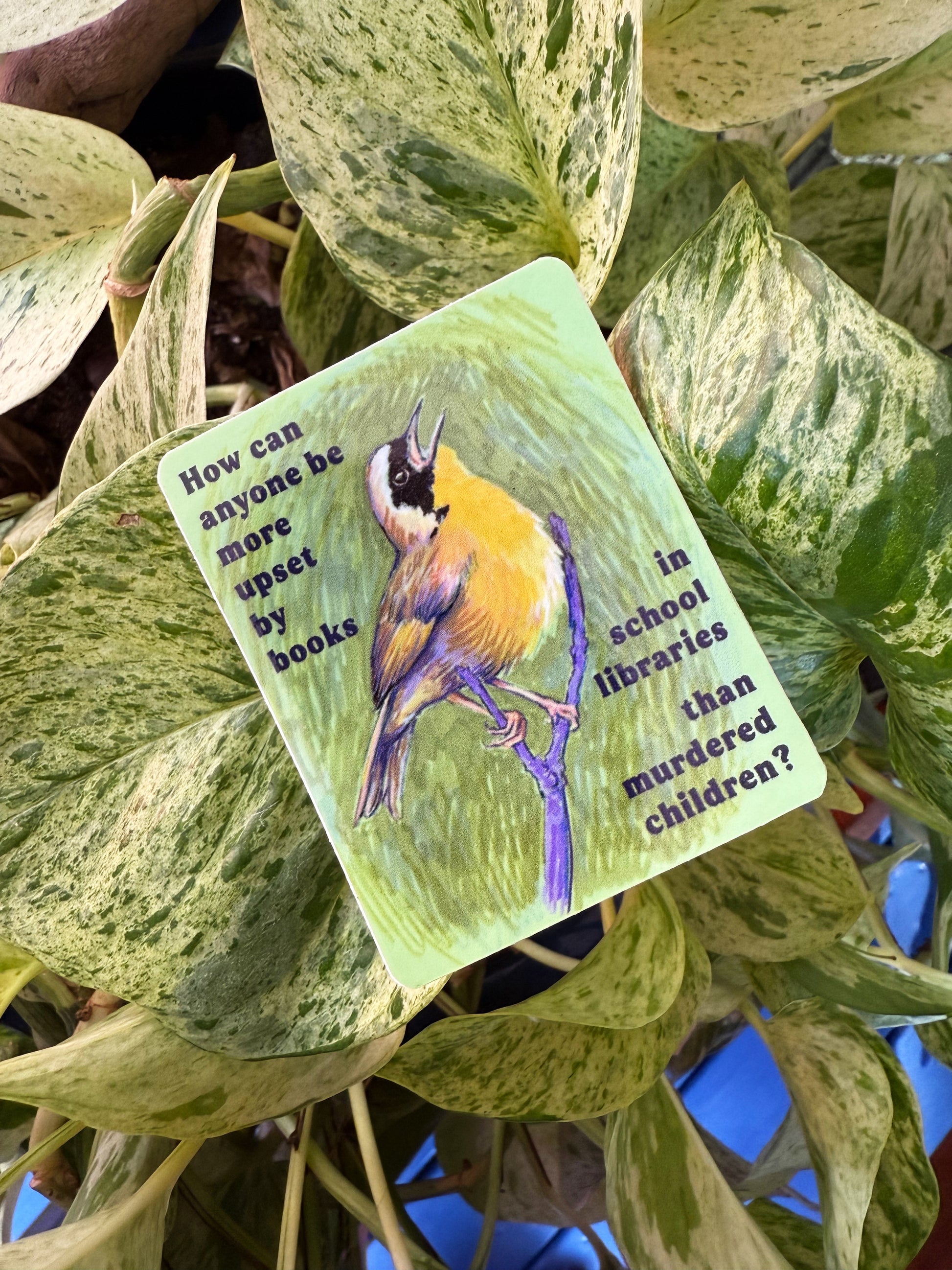 How can anyone be more upset by books in school libraries than murdered children: Feminist sticker