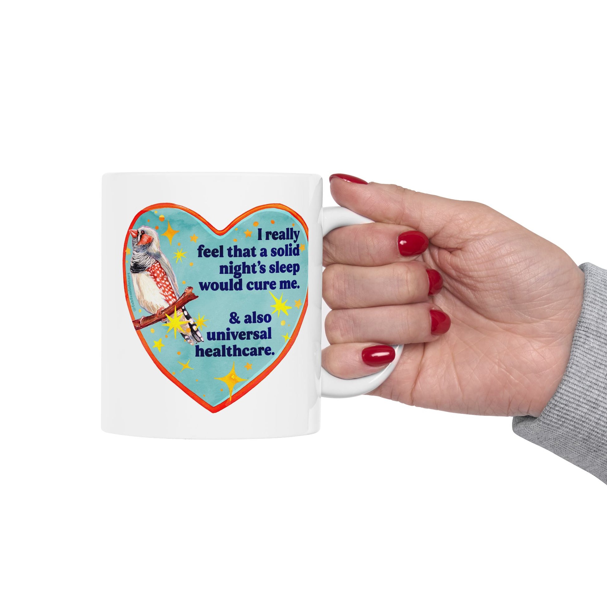 I really feel that a solid night's sleep would cure me and also universal healthcare: feminist mug
