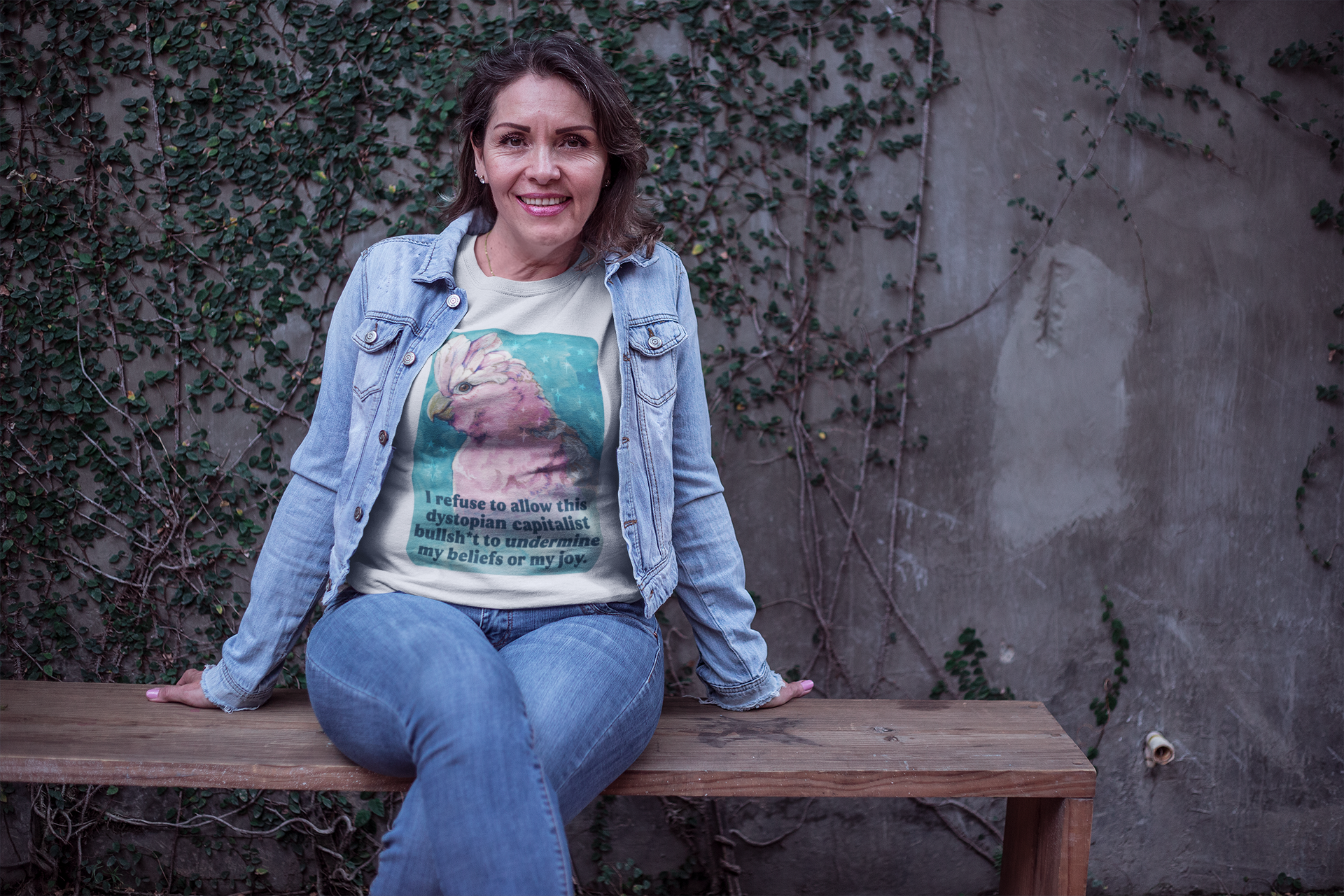 I refuse to allow this dystopian capitalist bullsh*t to undermine my beliefs or my joy: feminist shirt