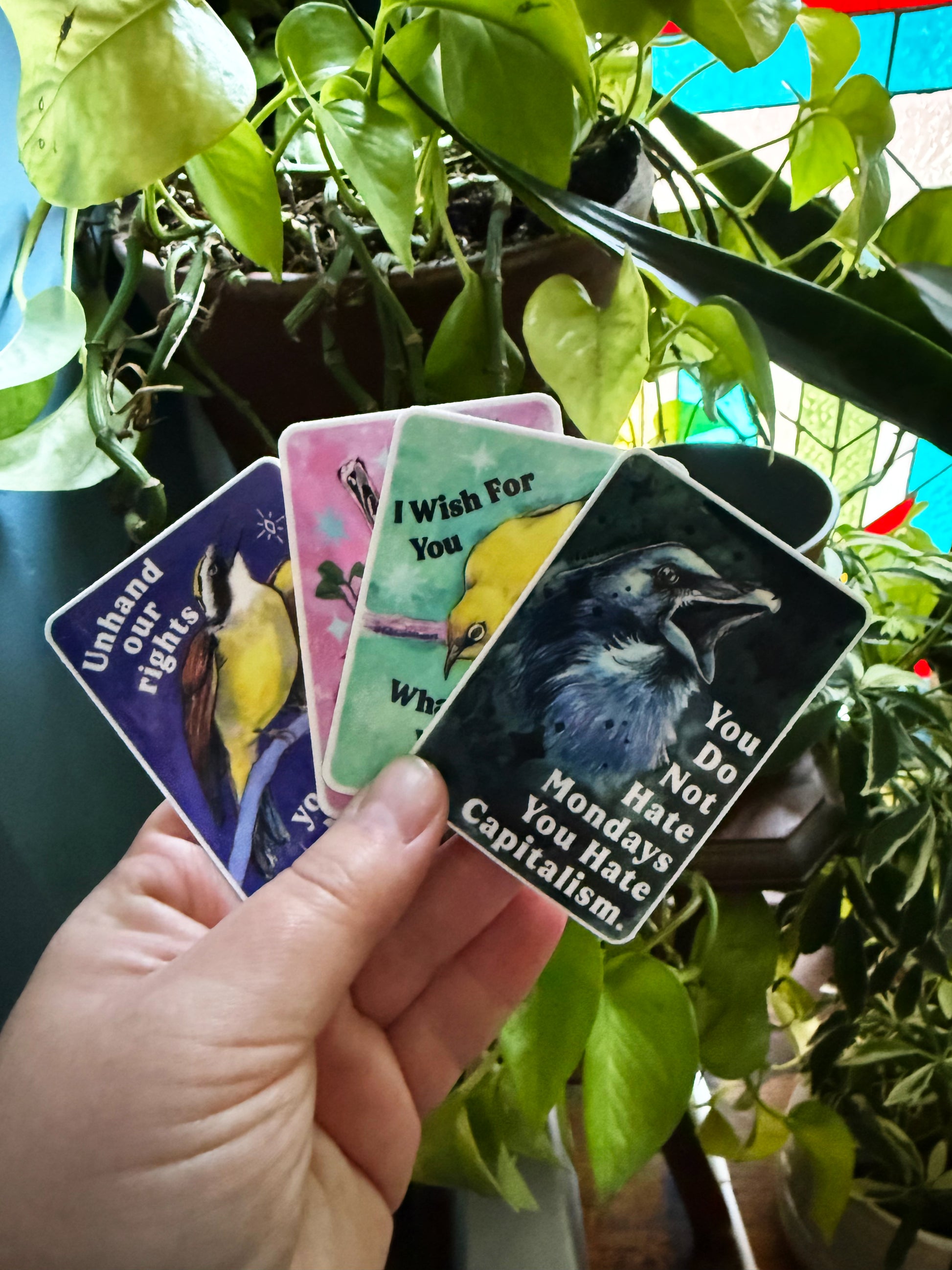 You will receive one 3" sticker printed with high quality opaque ink on weatherproof vinyl, sturdy enough for your water bottle and your car (or bike) and dishwasher safe. The adhesive is permanent, though -- so make sure you'll want it forever wherever you do stick it!