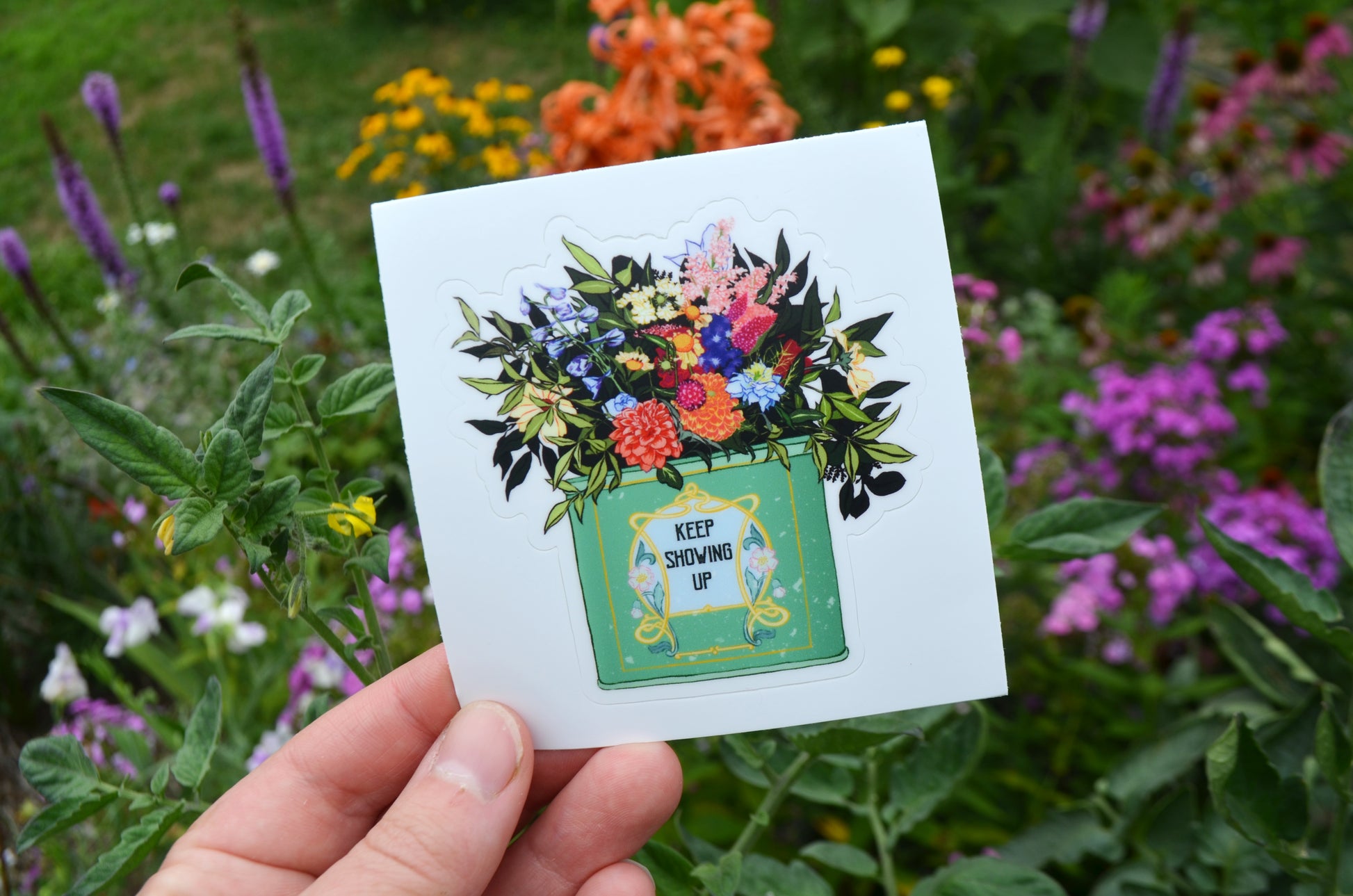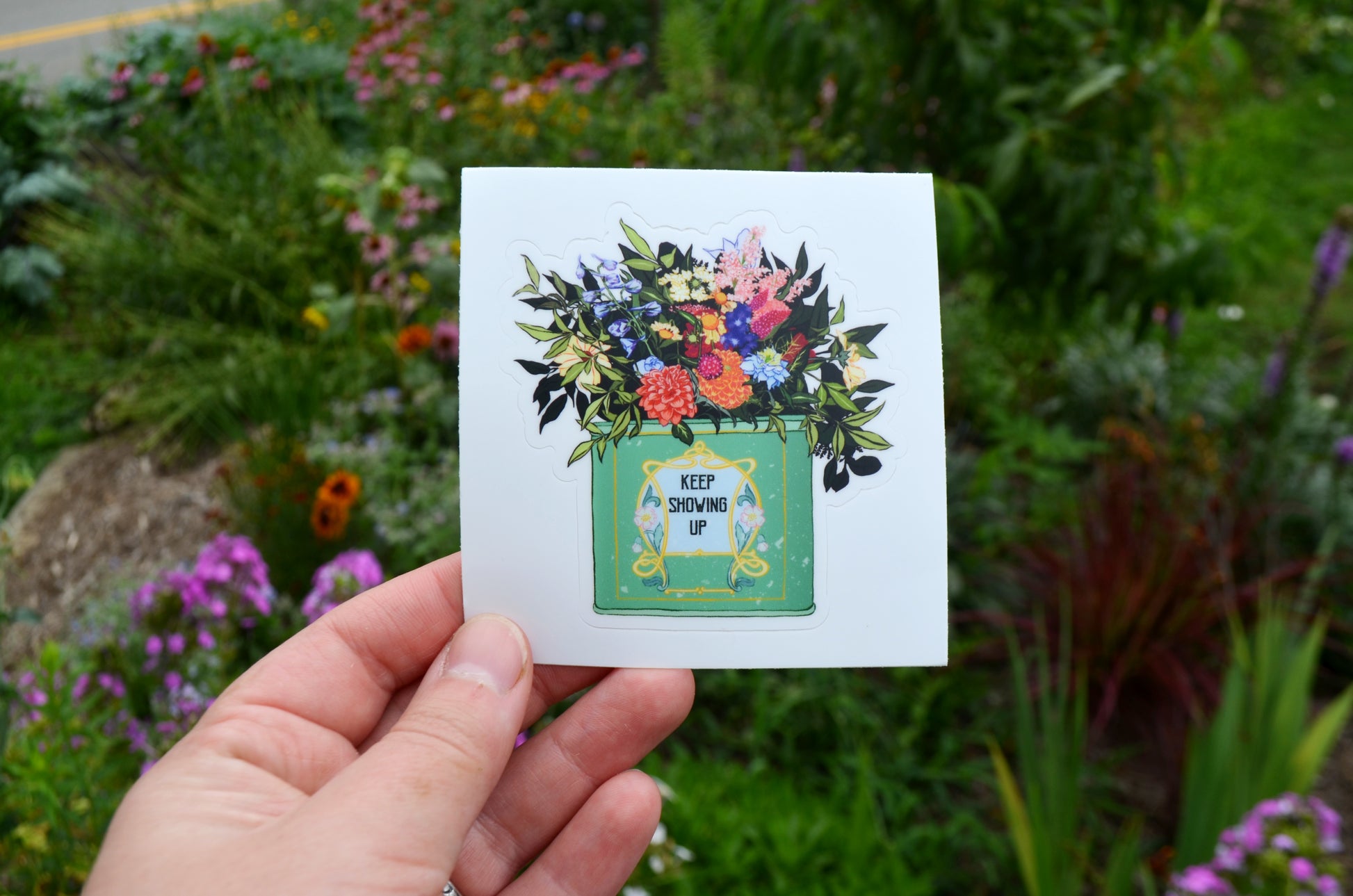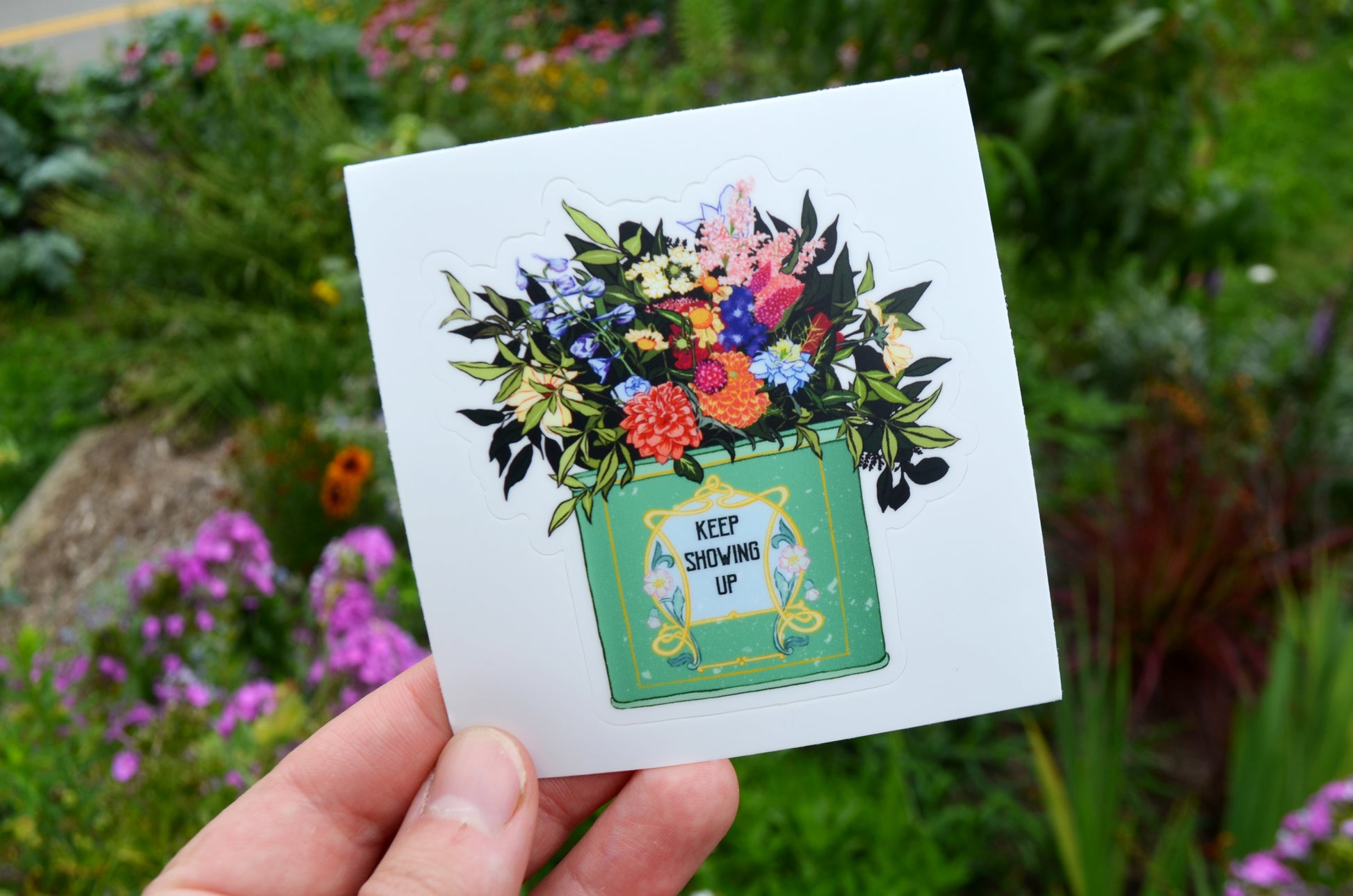 You will receive one 2.86" x 3" sticker printed with high quality opaque ink on weatherproof thick vinyl, sturdy enough for your water bottle and your car (or bike) and dishwasher safe. The adhesive is permanent, though -- so make sure you'll want it forever wherever you do stick it!