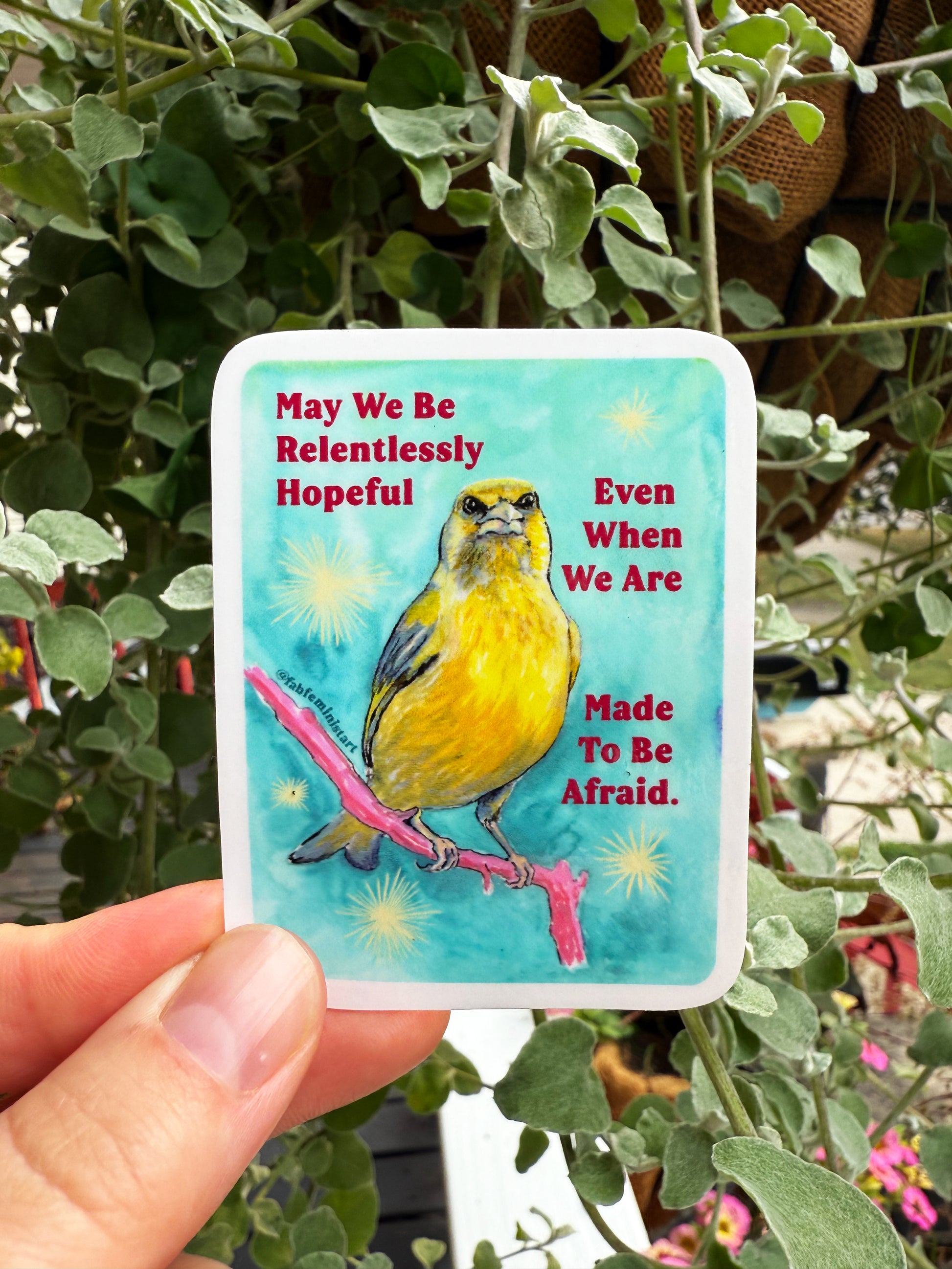 May We Be Relentlessly Hopeful Even When We Are Made To Be Afraid: Feminist Sticker