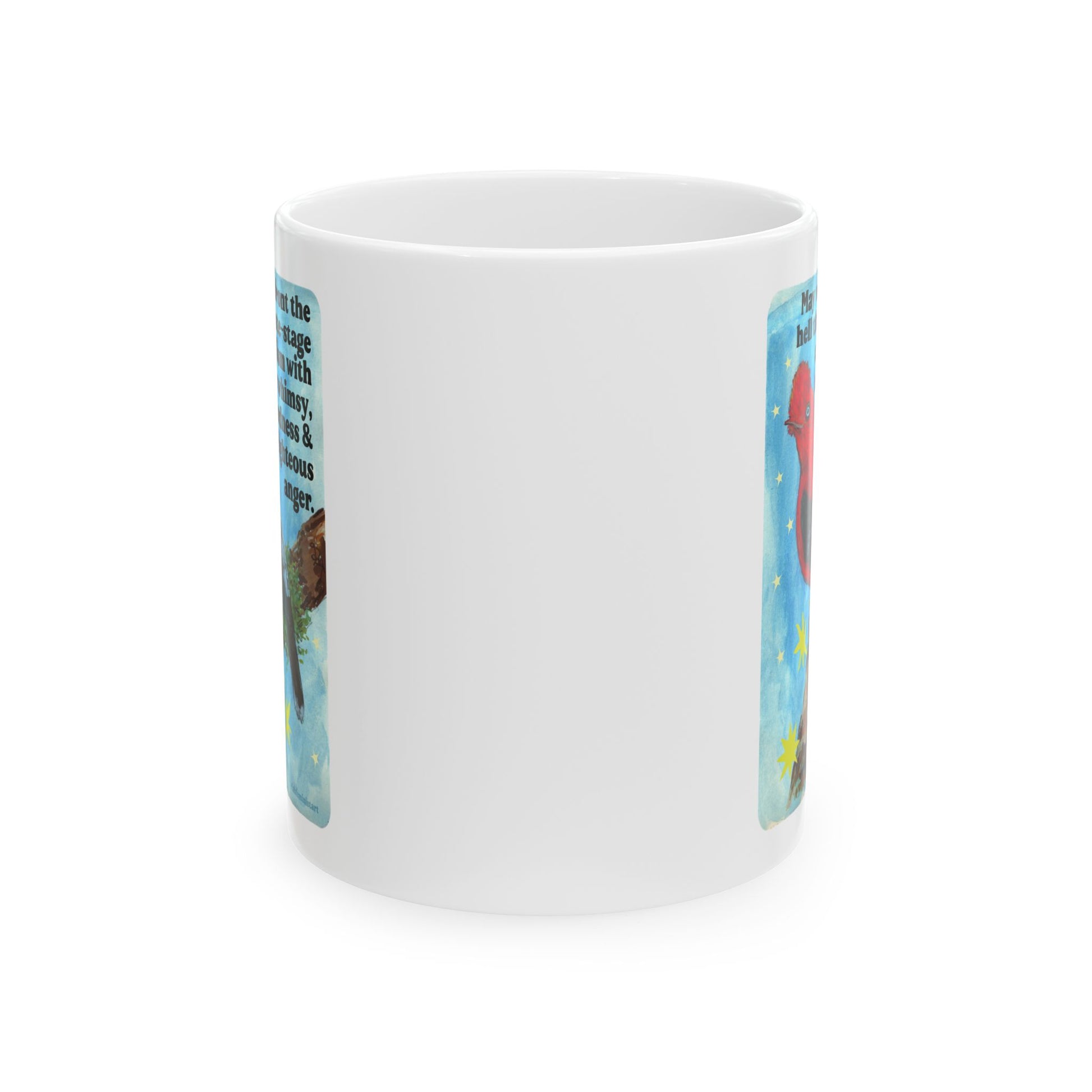 A bright, glossy ceramic mug that turns a simple coffee break into a small, joyful ritual. The colorful artwork wraps around the white ceramic, bringing lively hues and playful detail to your morning routine or late-night tea. Comfortable C-handle and a shiny finish make it easy to hold and pleasing to display on open shelves. Built to be used every day — microwave and dishwasher safe, and made from lead- and BPA-free materials — this mug holds either 11oz or 15oz depending on how much comfort you need. Bring a splash of color and a moment of warmth to your counter, desk, or bedside table.