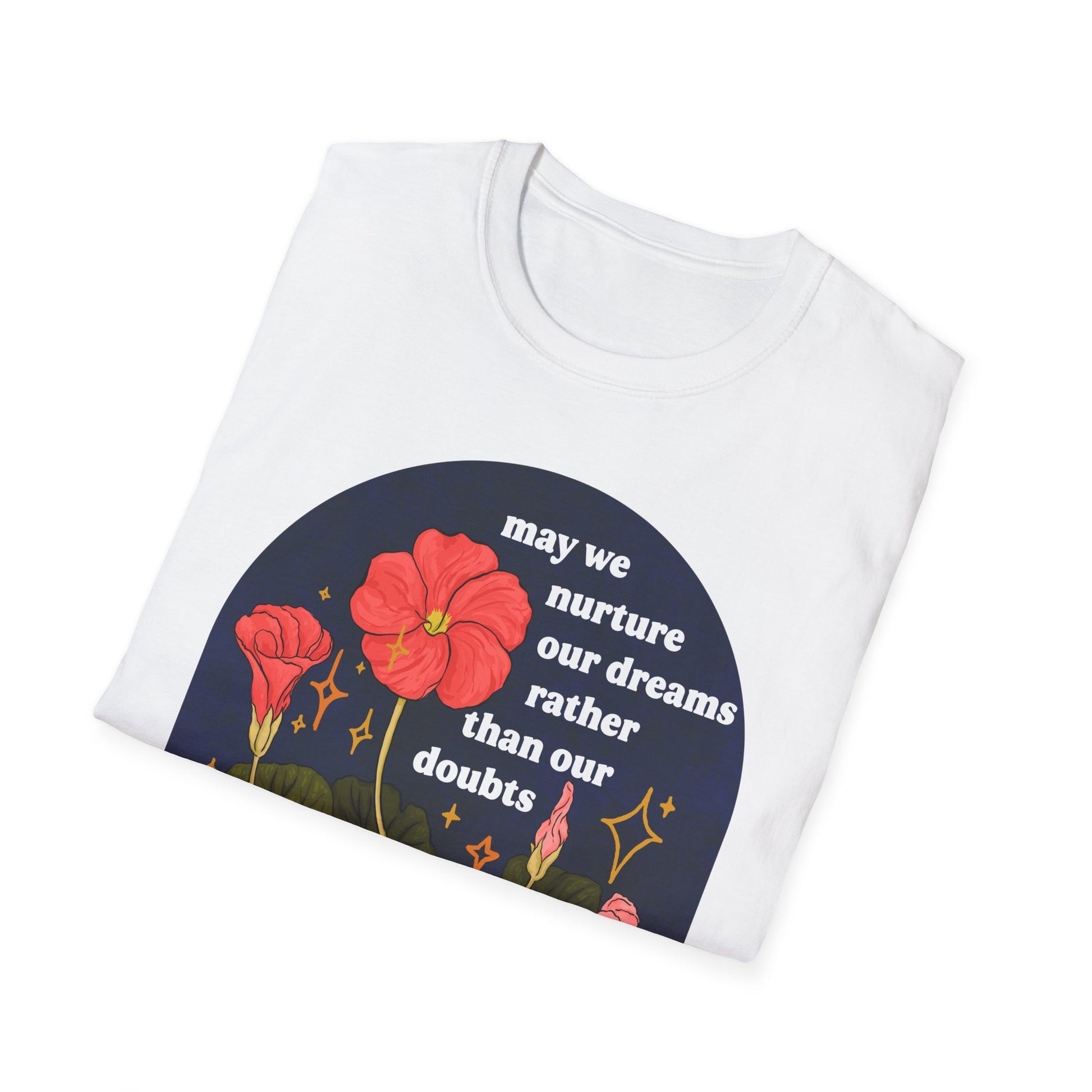 Elevate your everyday style with this Unisex Softstyle T-Shirt, designed to inspire and uplift. Featuring a beautiful floral design and a motivational quote, this tee radiates positivity and encourages wearers to pursue their dreams. Its lightweight, breathable fabric ensures comfort throughout the day, making it a versatile choice for both casual outings and relaxed home wear. Ideal for dreamers, creatives, or anyone seeking a daily reminder of self-belief, this t-shirt is perfect for gifts during occasions such as birthdays, graduations, or life transitions. Whether worn on its own or layered with jackets, this tee brings a touch of encouragement to any wardrobe and is suitable for various celebrations, including International Women’s Day and Mental Health Awareness Month.