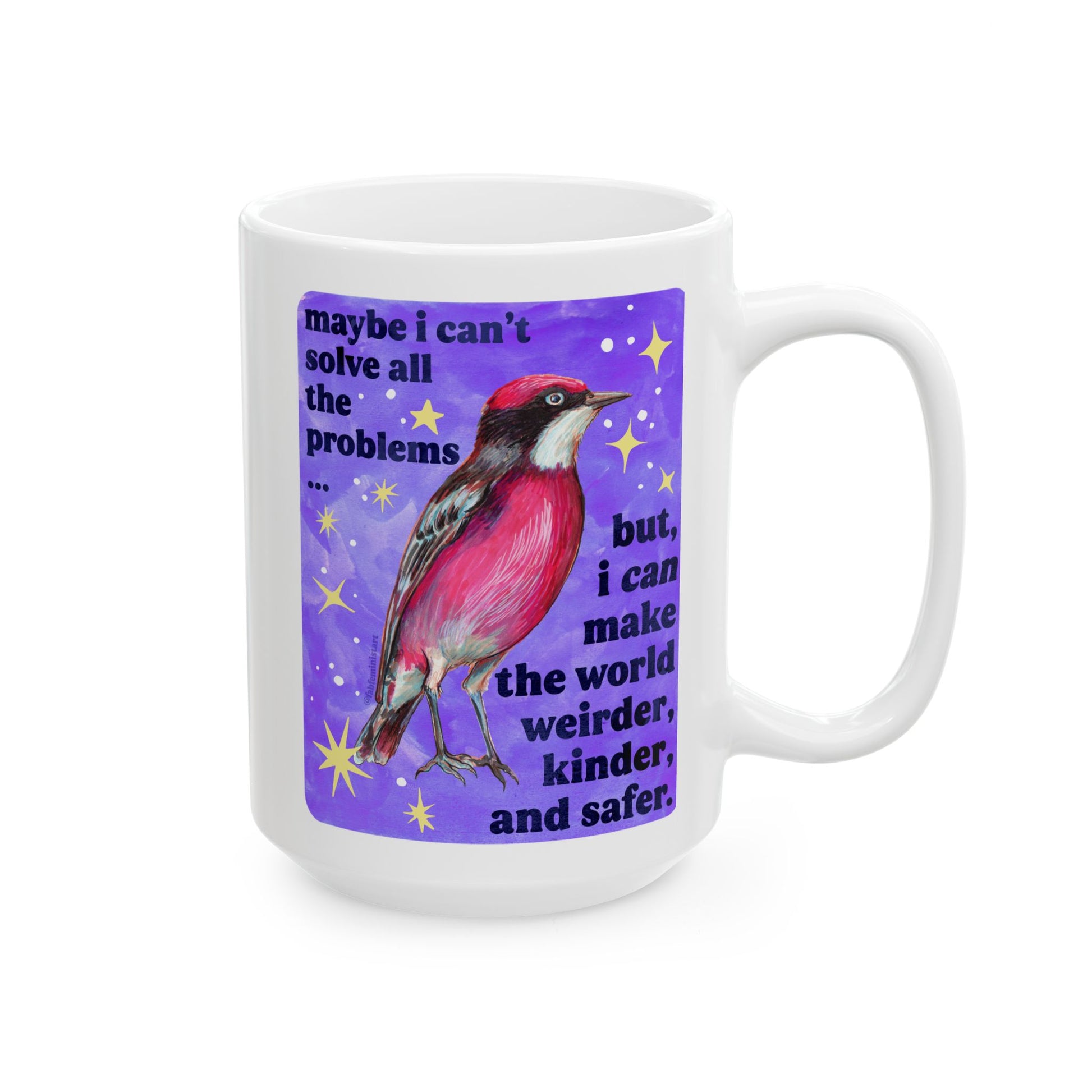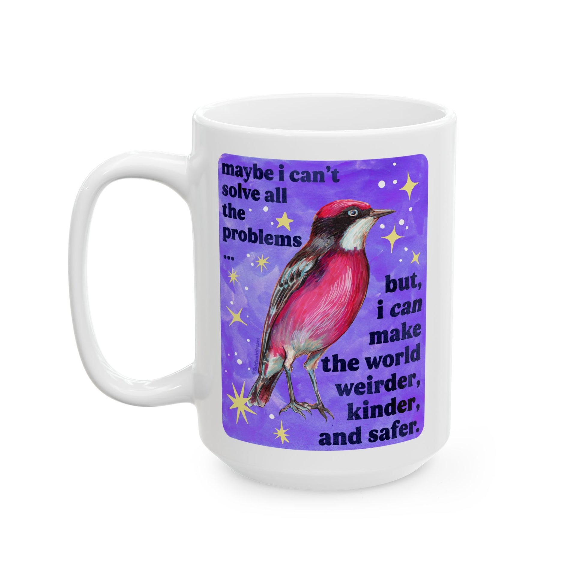 Maybe I Can't Solve All The Problems but I can make the world weirder kinder and safer: feminist mug
