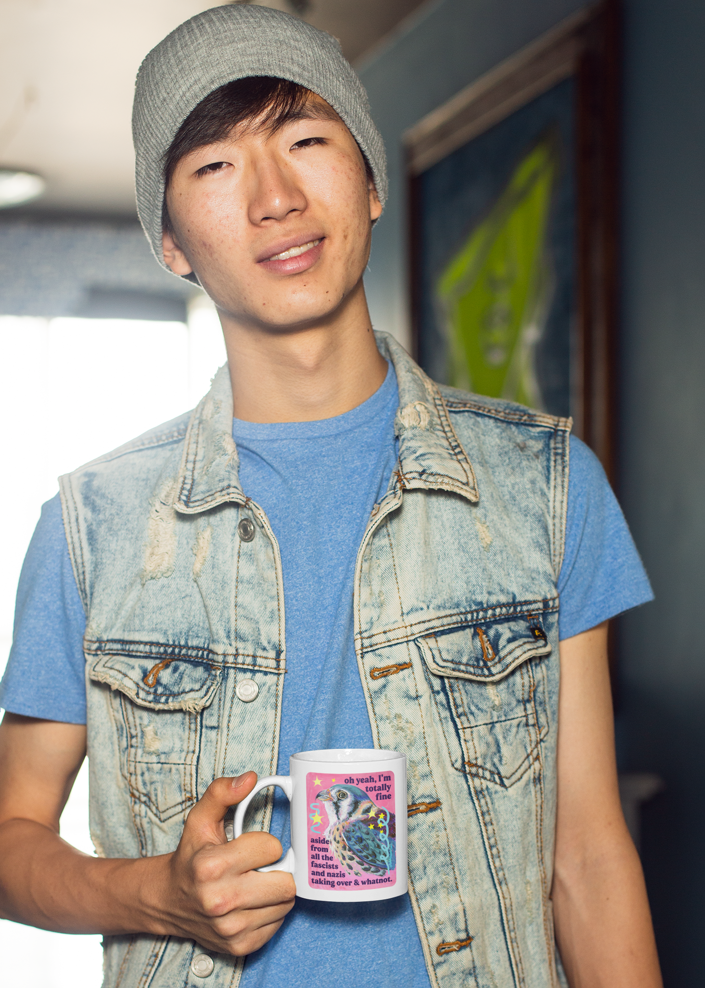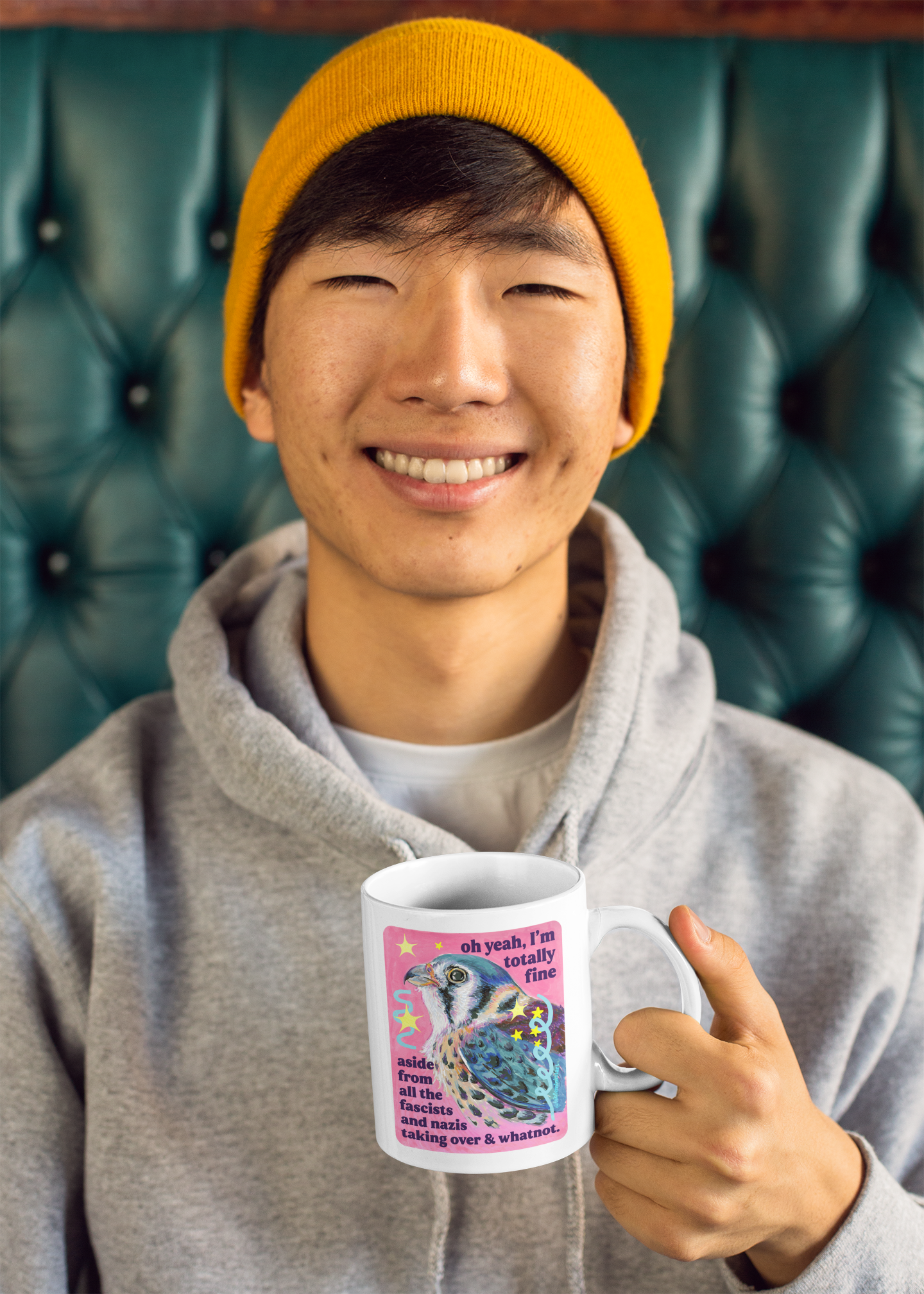 oh yeah, I'm totally fine aside from all the fascists and naz*s taking over and whatnot: feminist mug