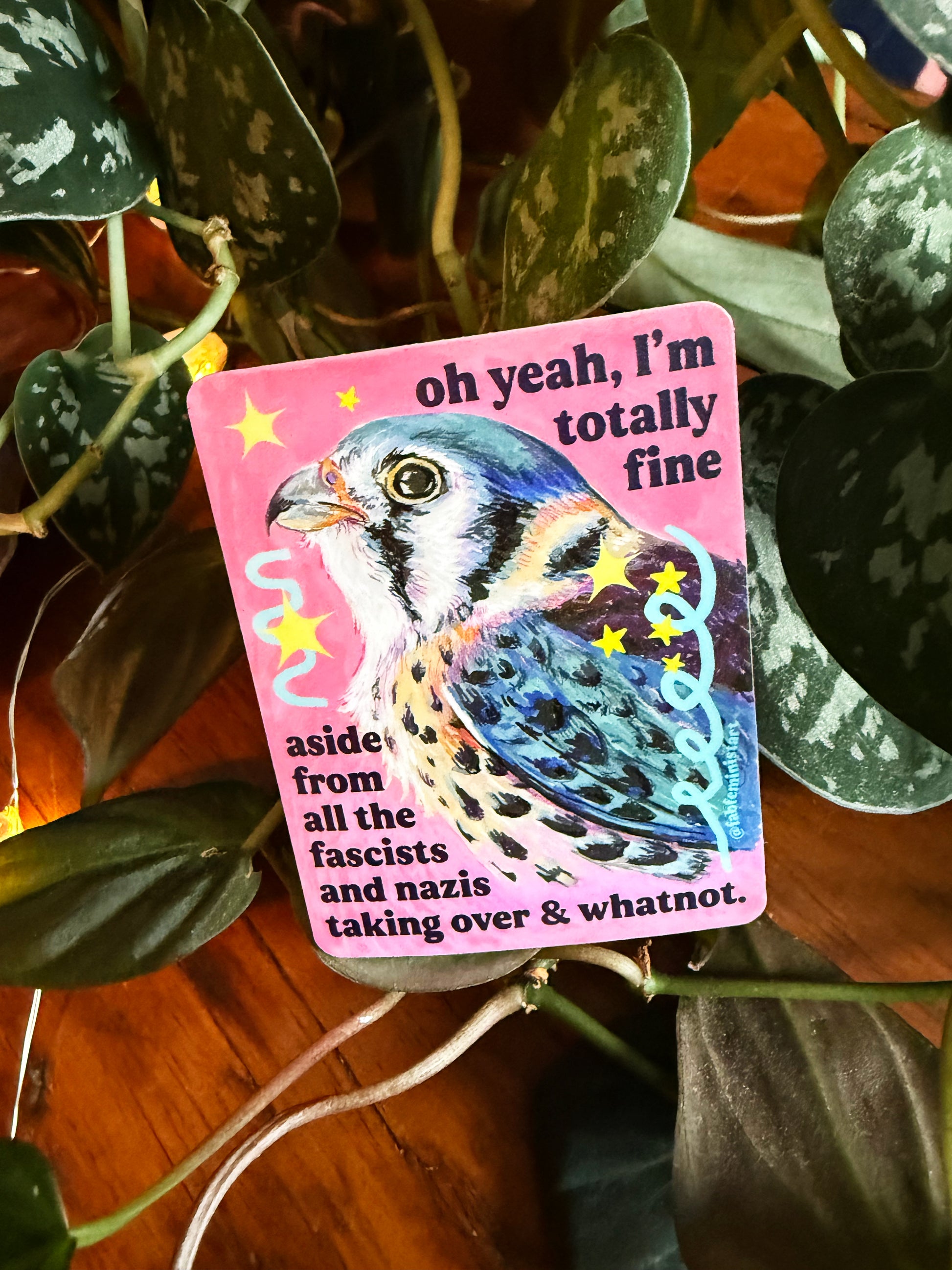 oh yeah, I'm totally fine aside from all the fascists and naz*s taking over and whatnot: feminist sticker