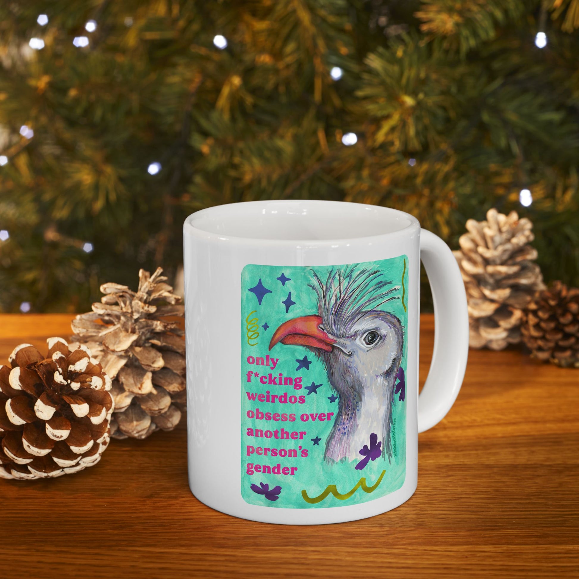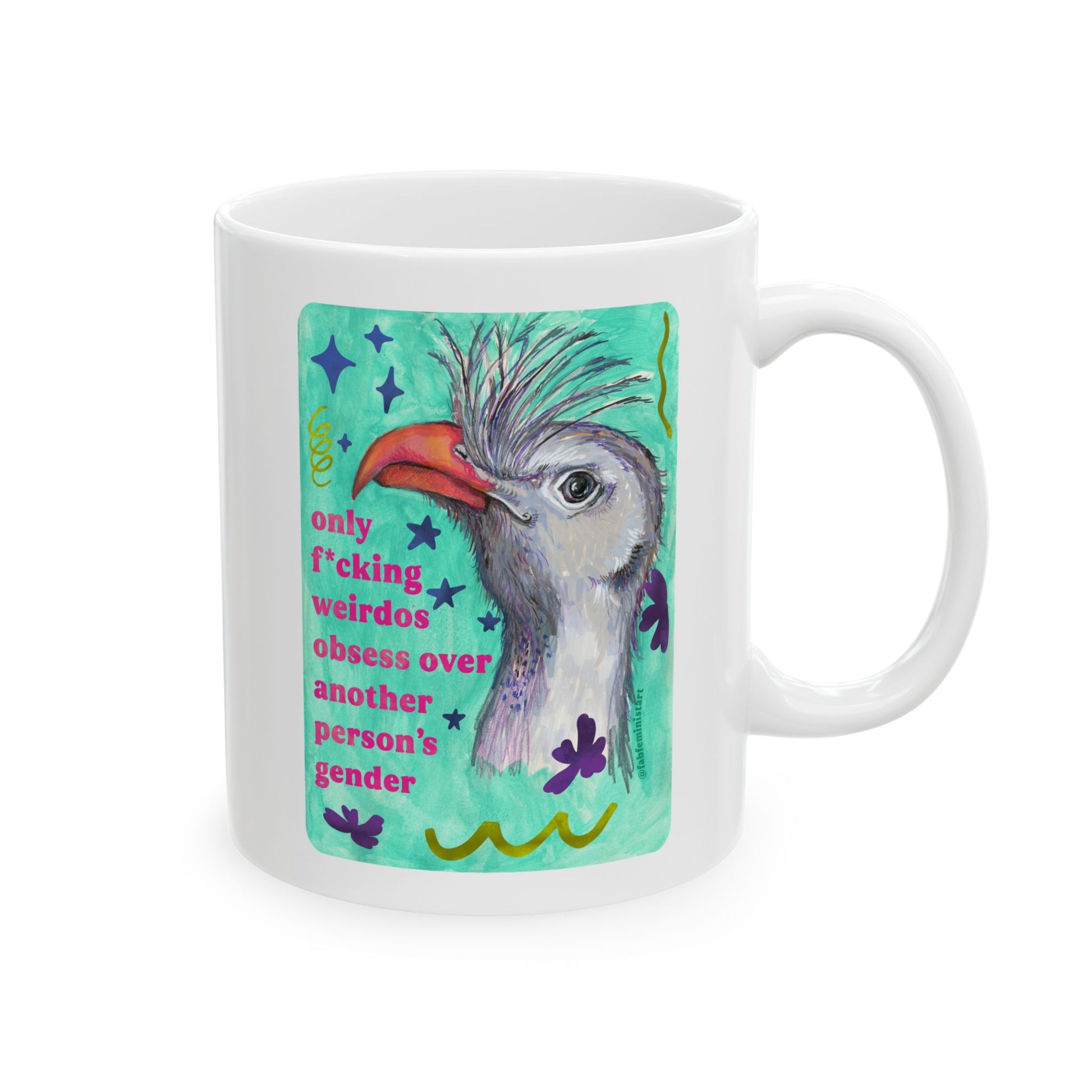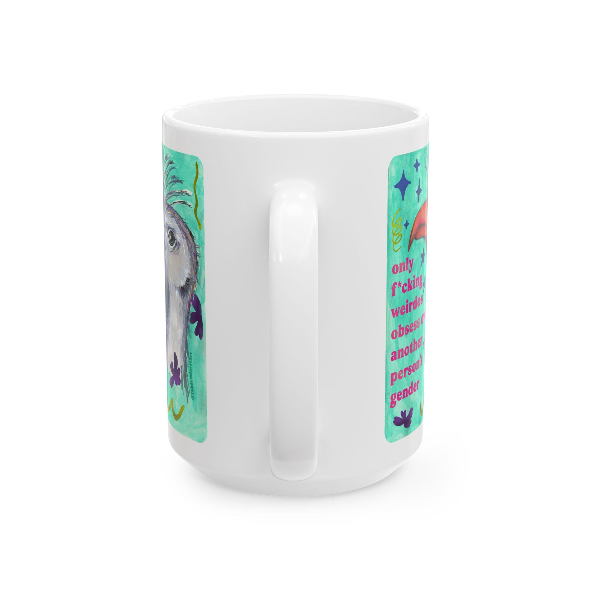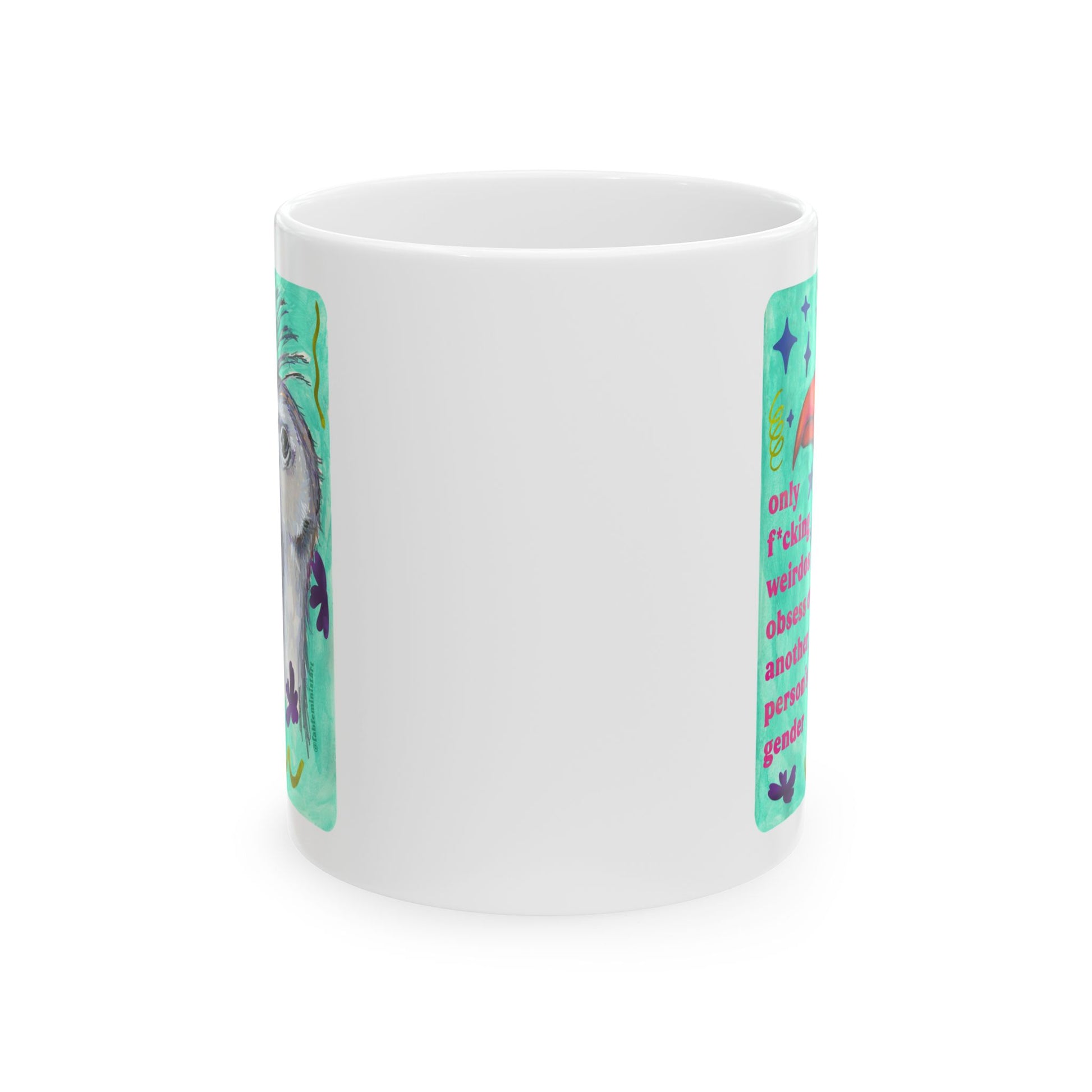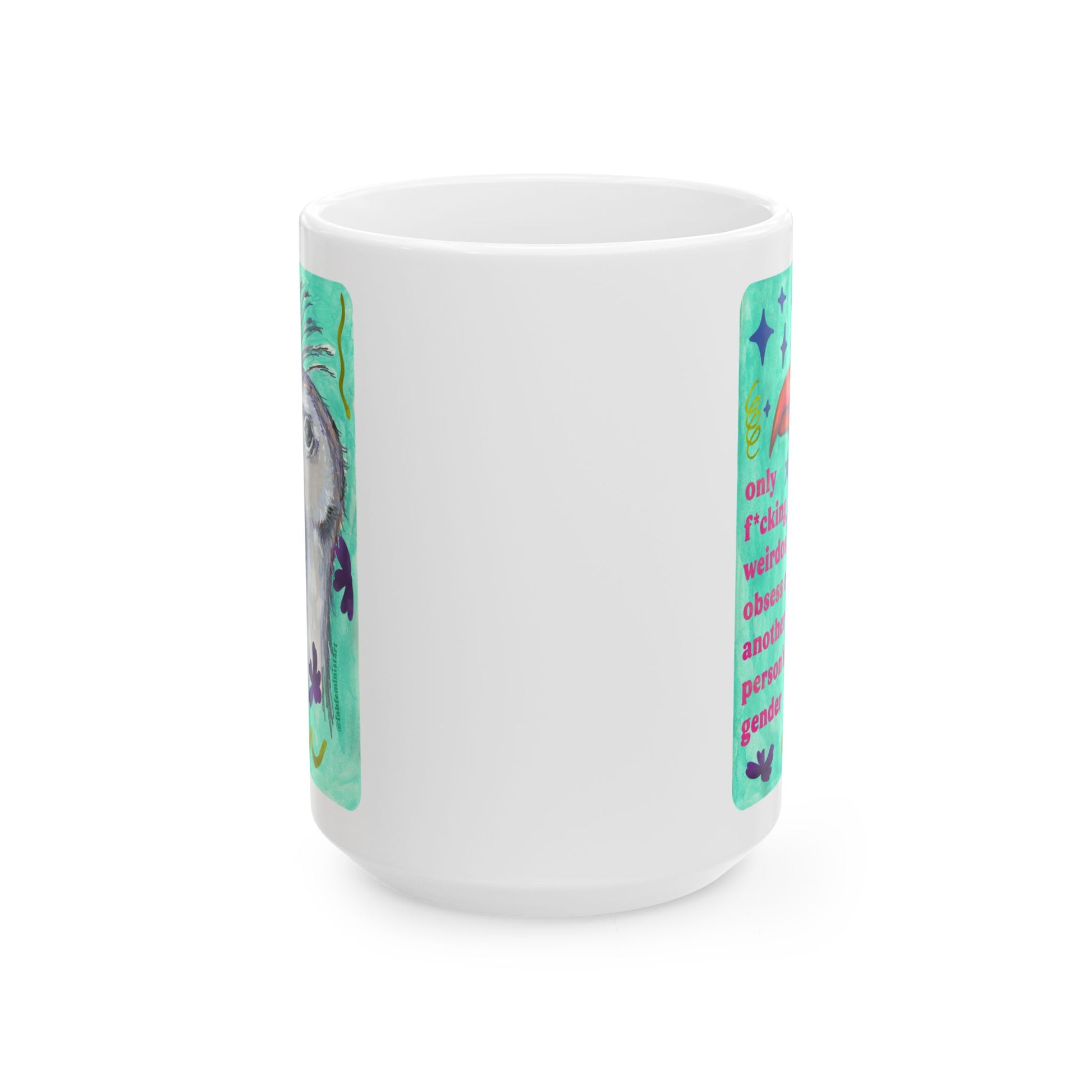 only f*cking weirdos obsess over another person's gender: feminist mug