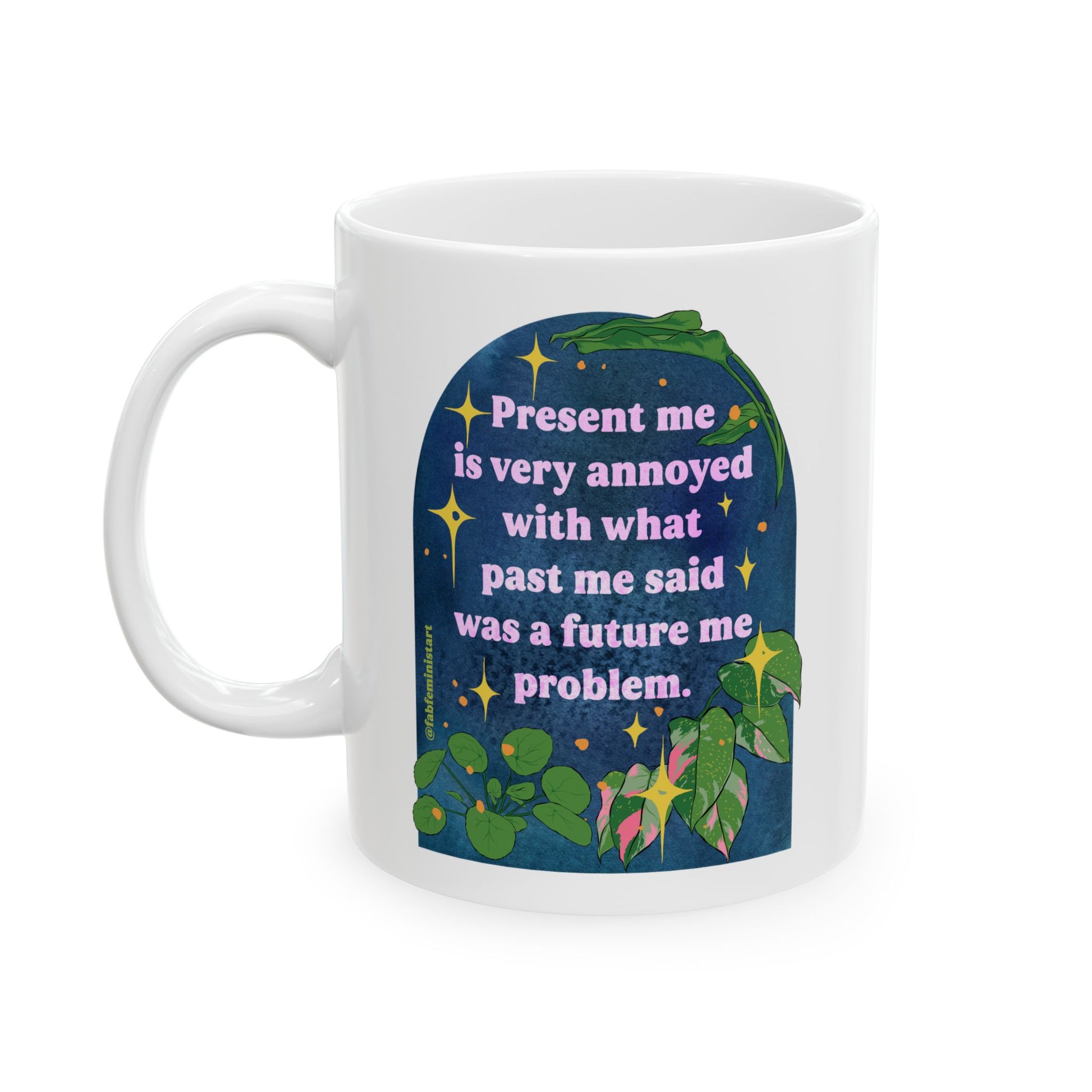 present me is very annoyed with what past me said was a future me problem: mental health mug