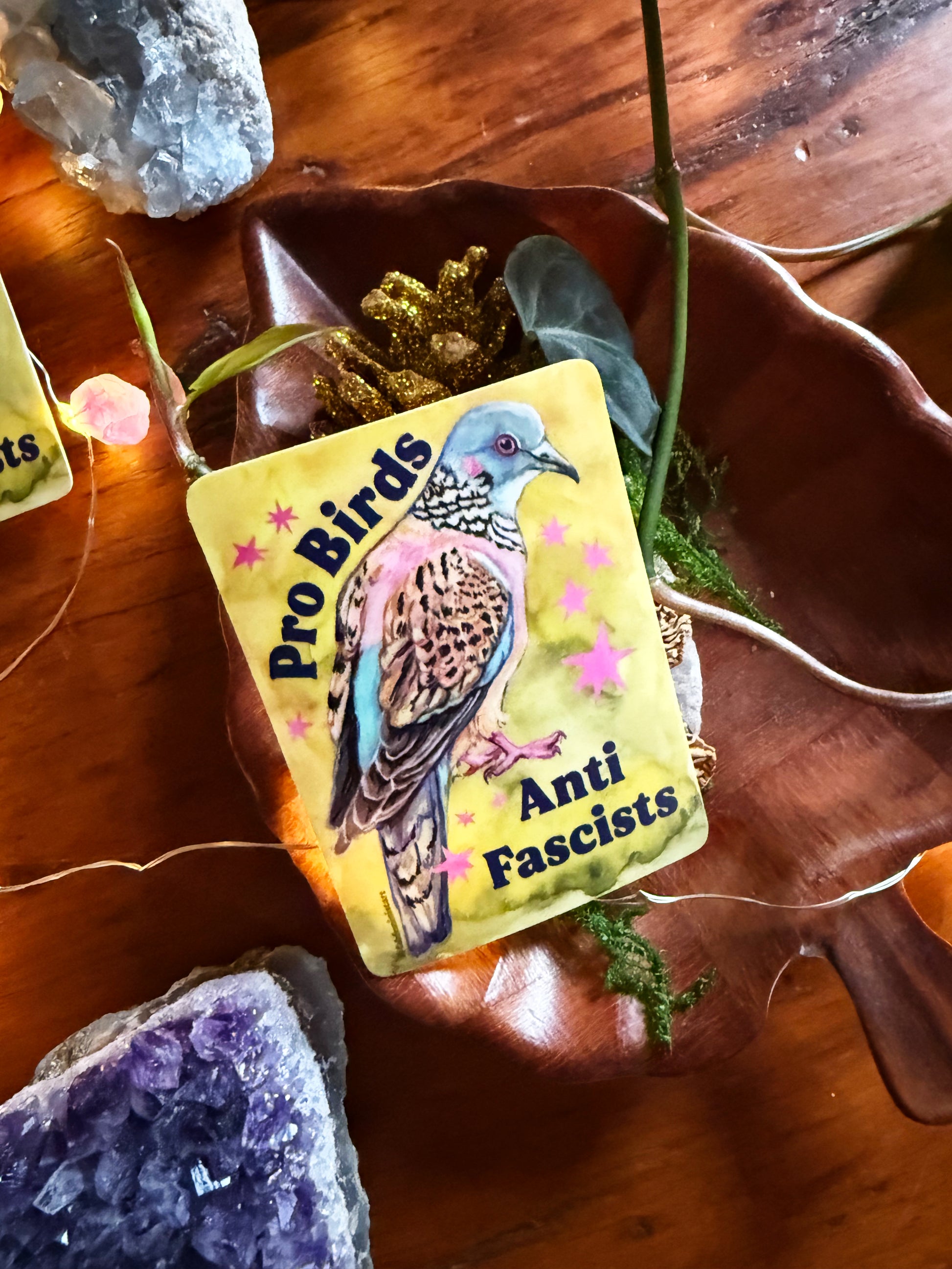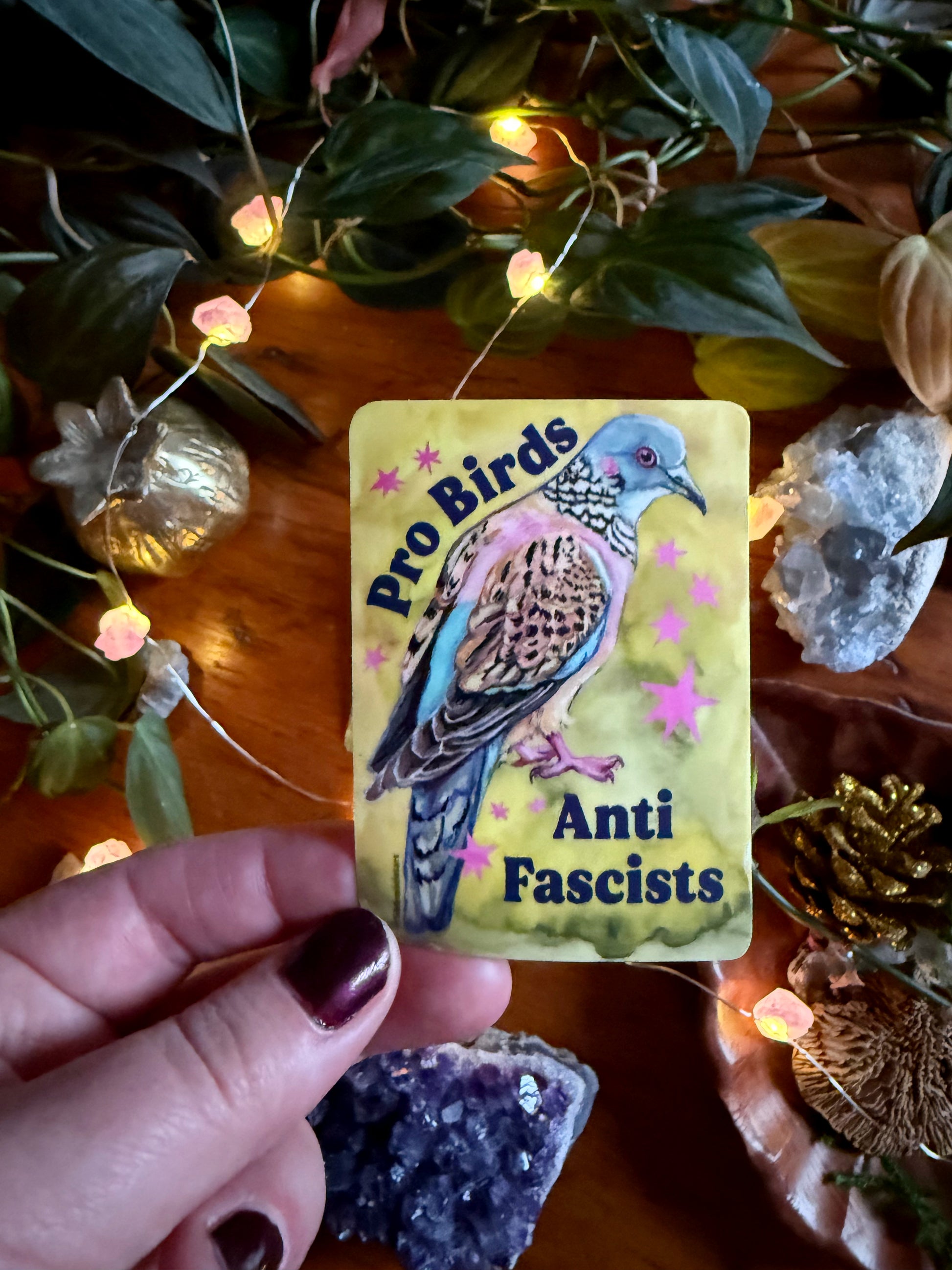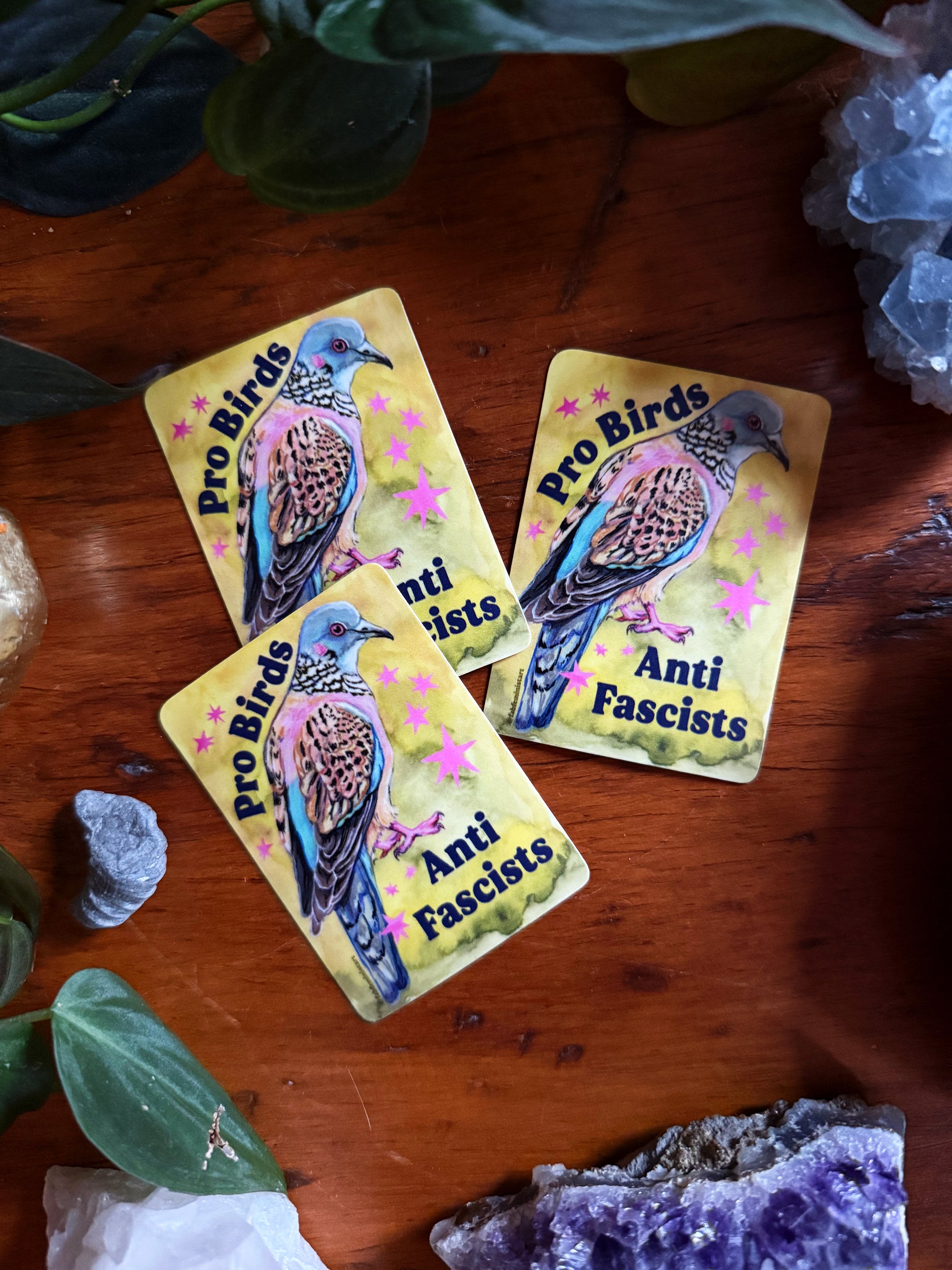 Pro Birds Anti Fascists: feminist sticker