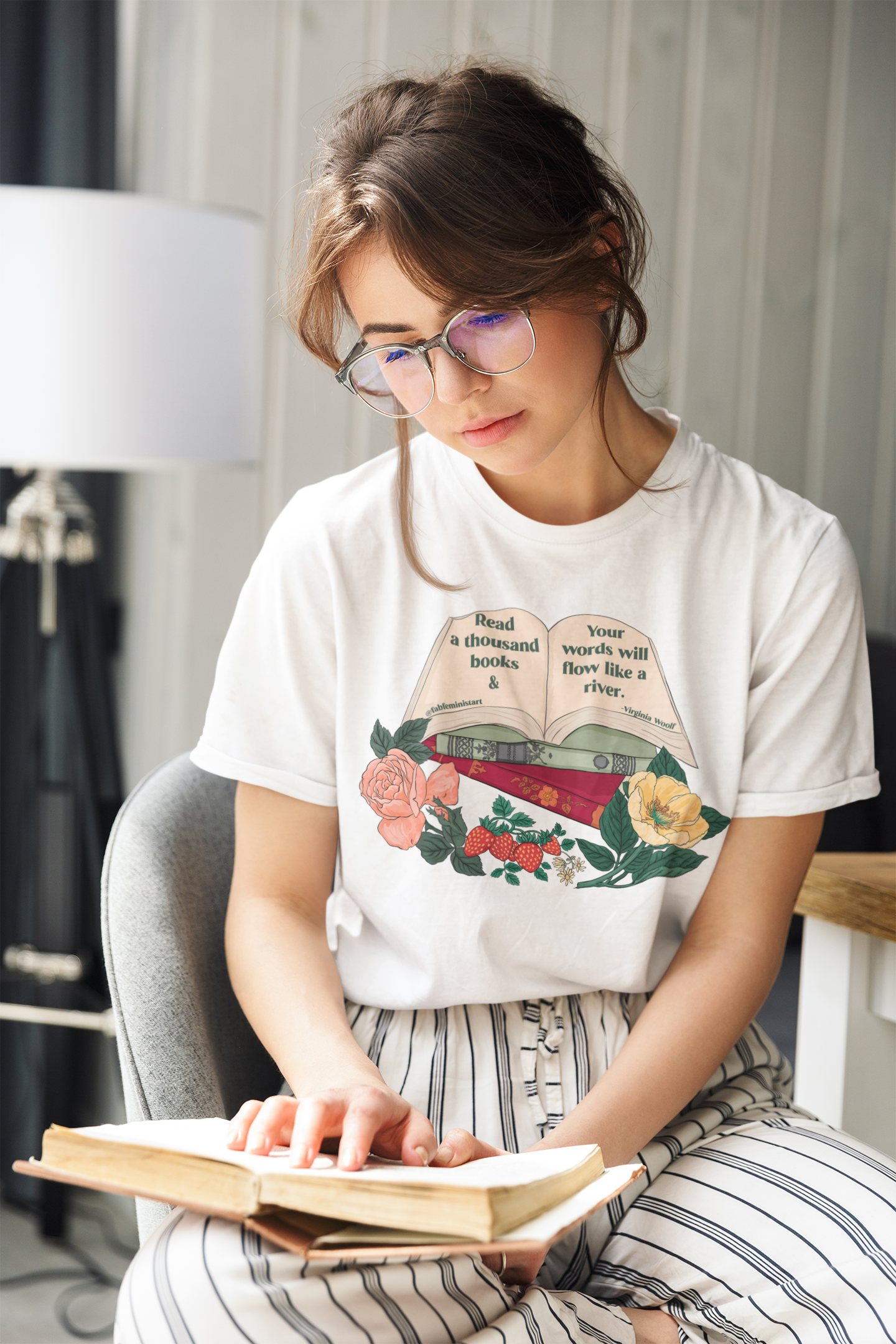 Read a thousand books and your words will flower like a river, Virginia Woolf: Feminist Shirt