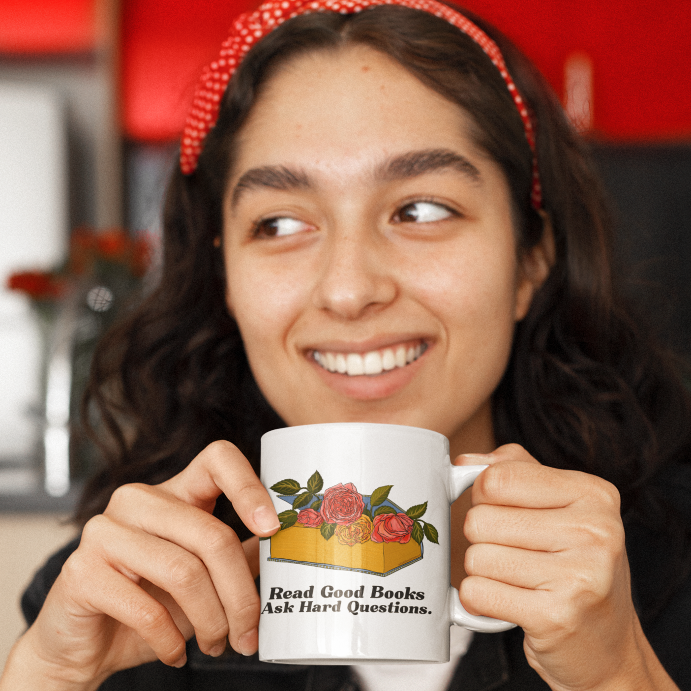 Read Good Books Ask Hard Questions: Book Lover Mug