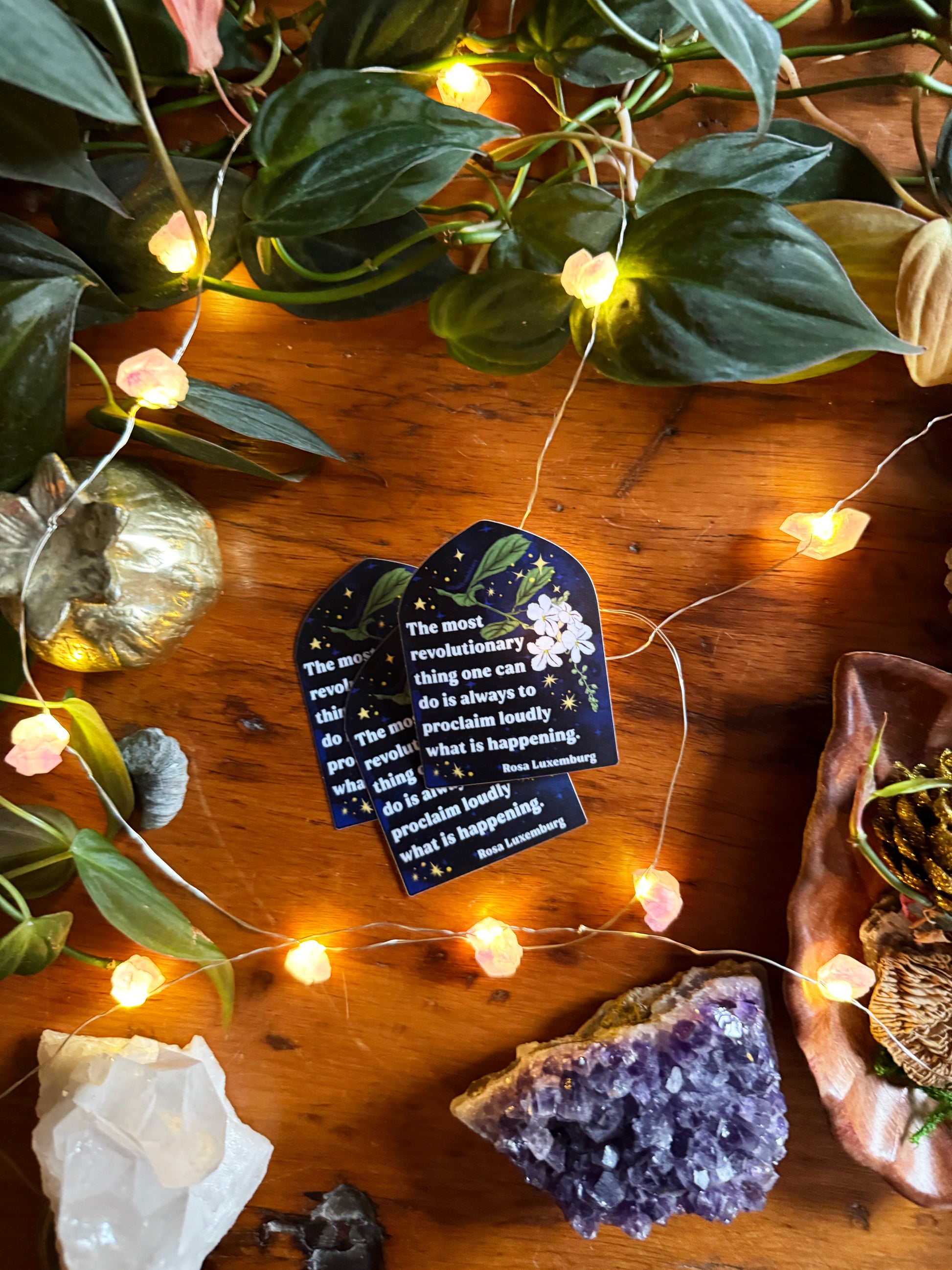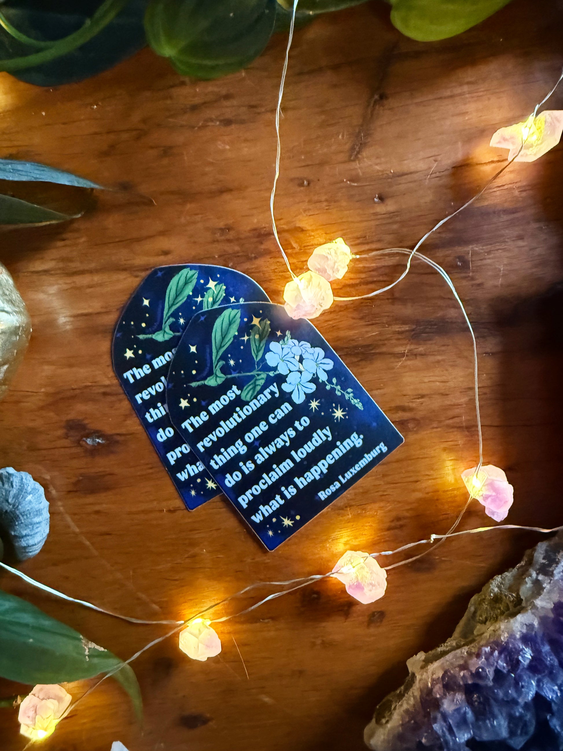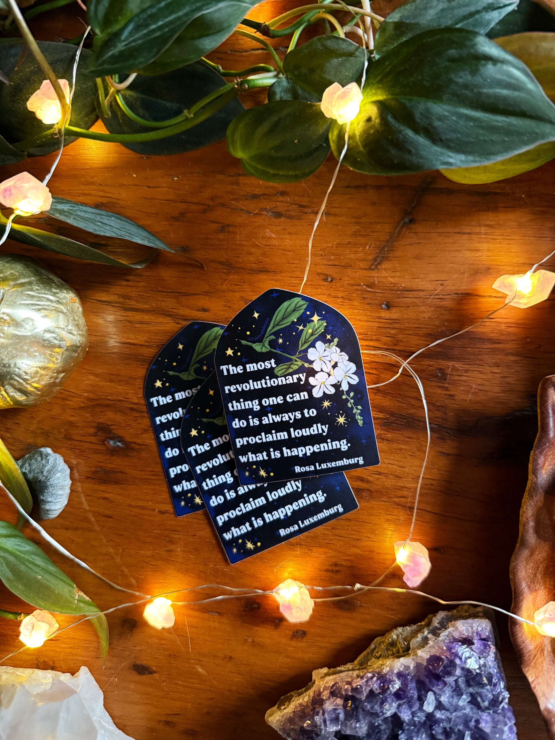 The most revolutionary thing one can do is always to proclaim loudly what is happening, Rosa Luxemburg: feminist sticker