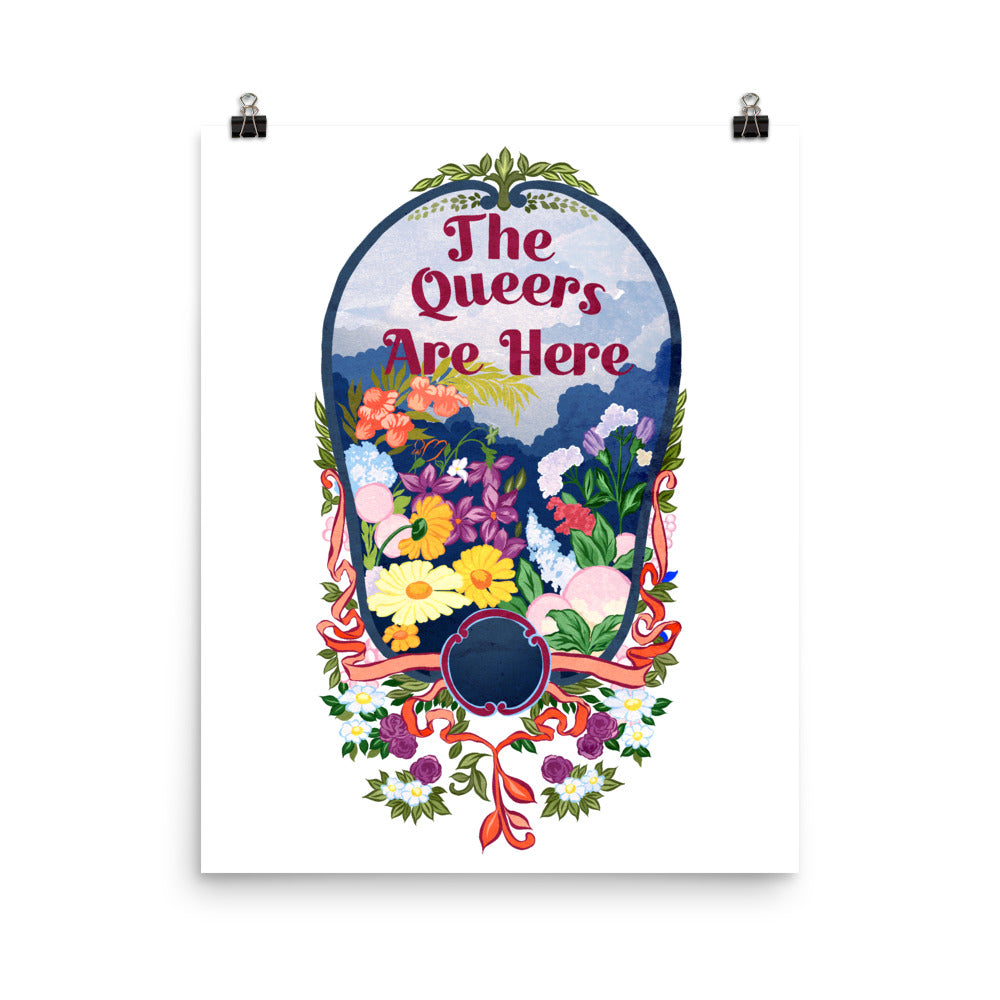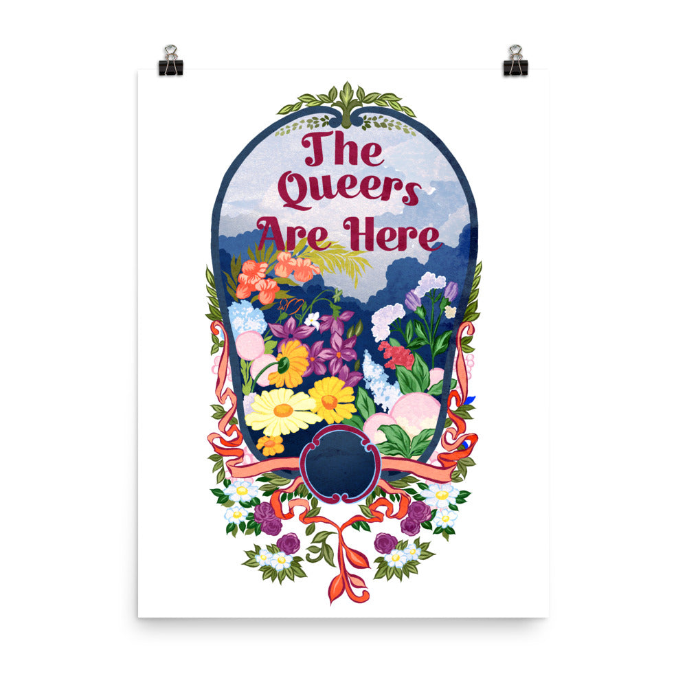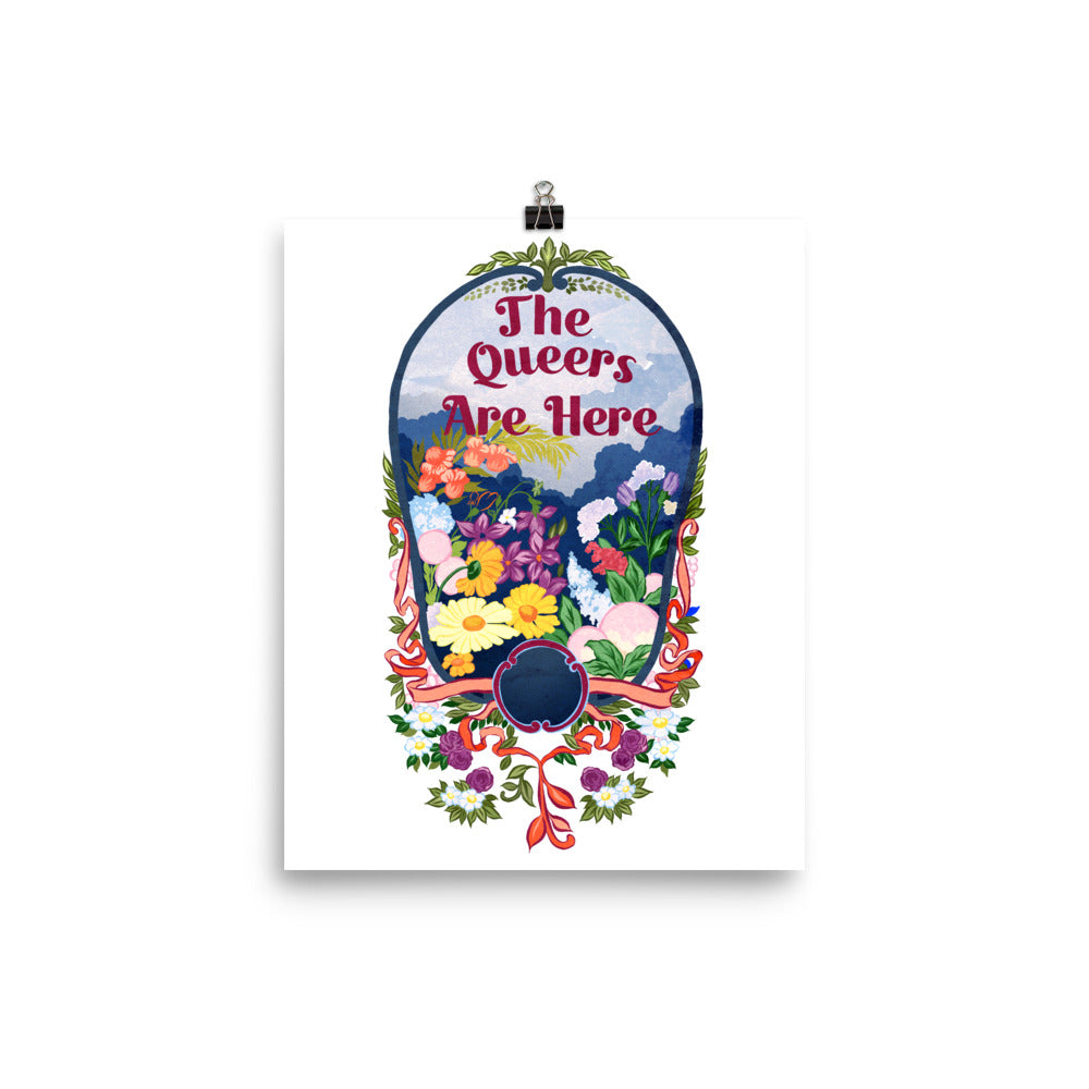 Add a wonderful accent to your room or office with a print of this affirming quote, "The Queers Are Here"