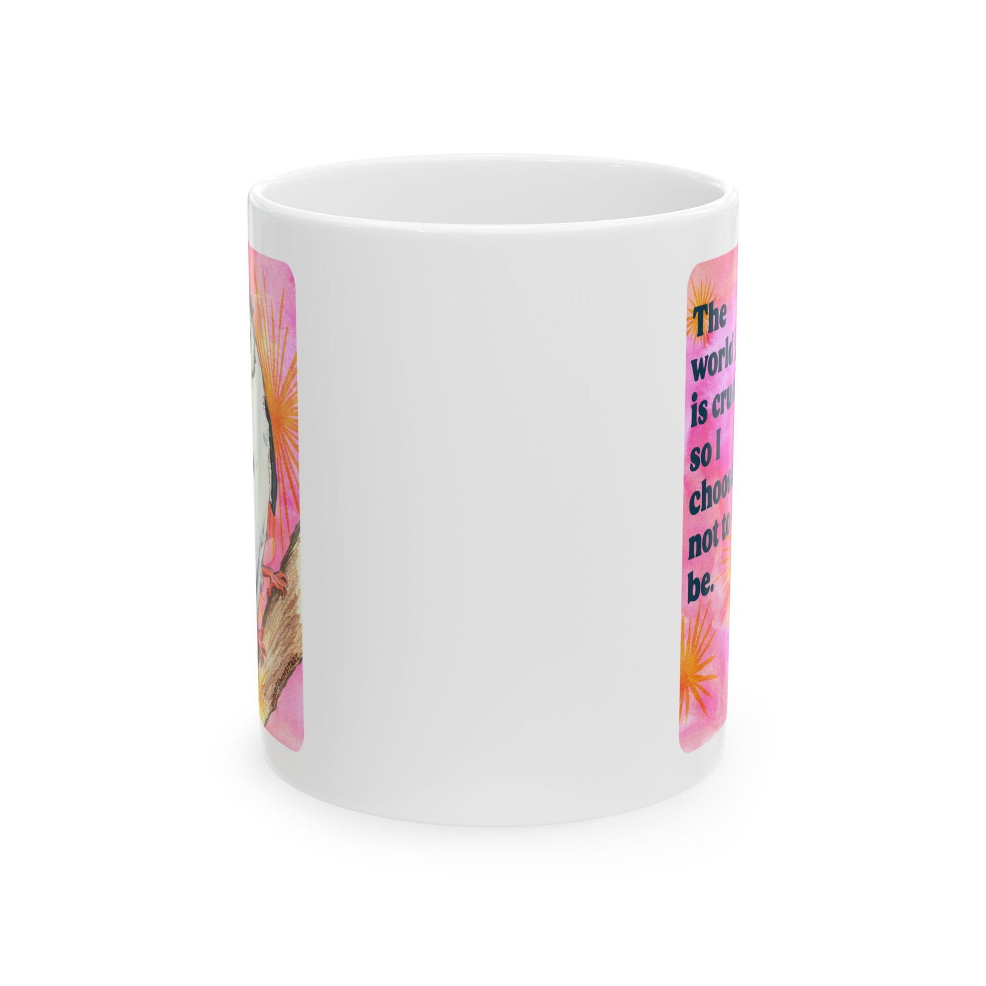 This glossy ceramic mug brings a playful, uplifting moment to ordinary mornings. Bright, saturated artwork wraps the exterior—soft pink backgrounds, retro sunbursts, and a bold illustrated figure—so every sip feels like a small celebration. The C-handle sits comfortably in the hand; the shiny finish makes the colors pop on your desk, kitchen counter, or studio. Durable white ceramic keeps the print vivid and safe for daily use. Whether reaching for coffee before a busy day or settling in with tea for a calm afternoon, this mug adds a cheerful, confident note to the routine.