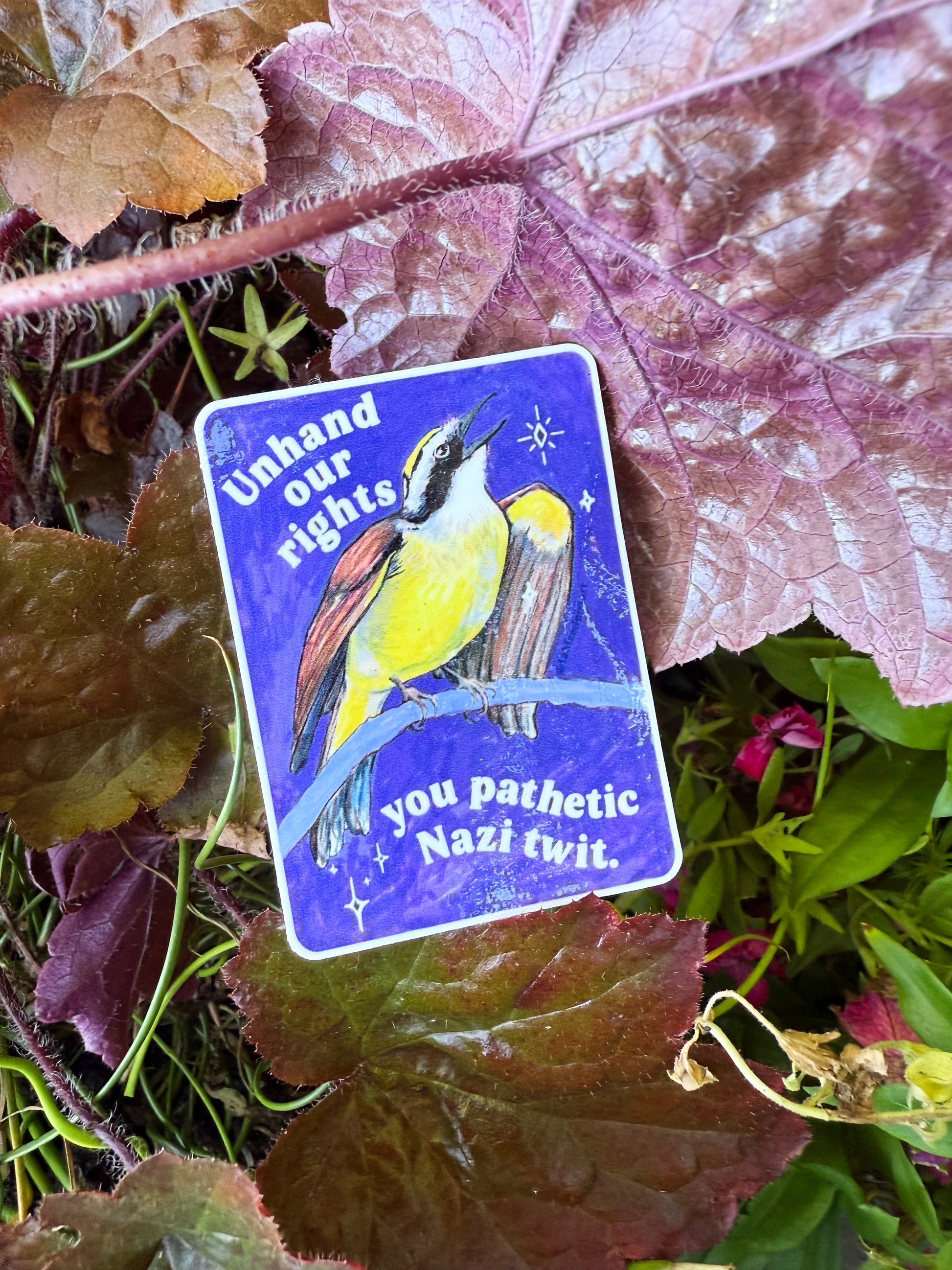 Unhand Our Rights You Nazi Twit: Feminist Sticker