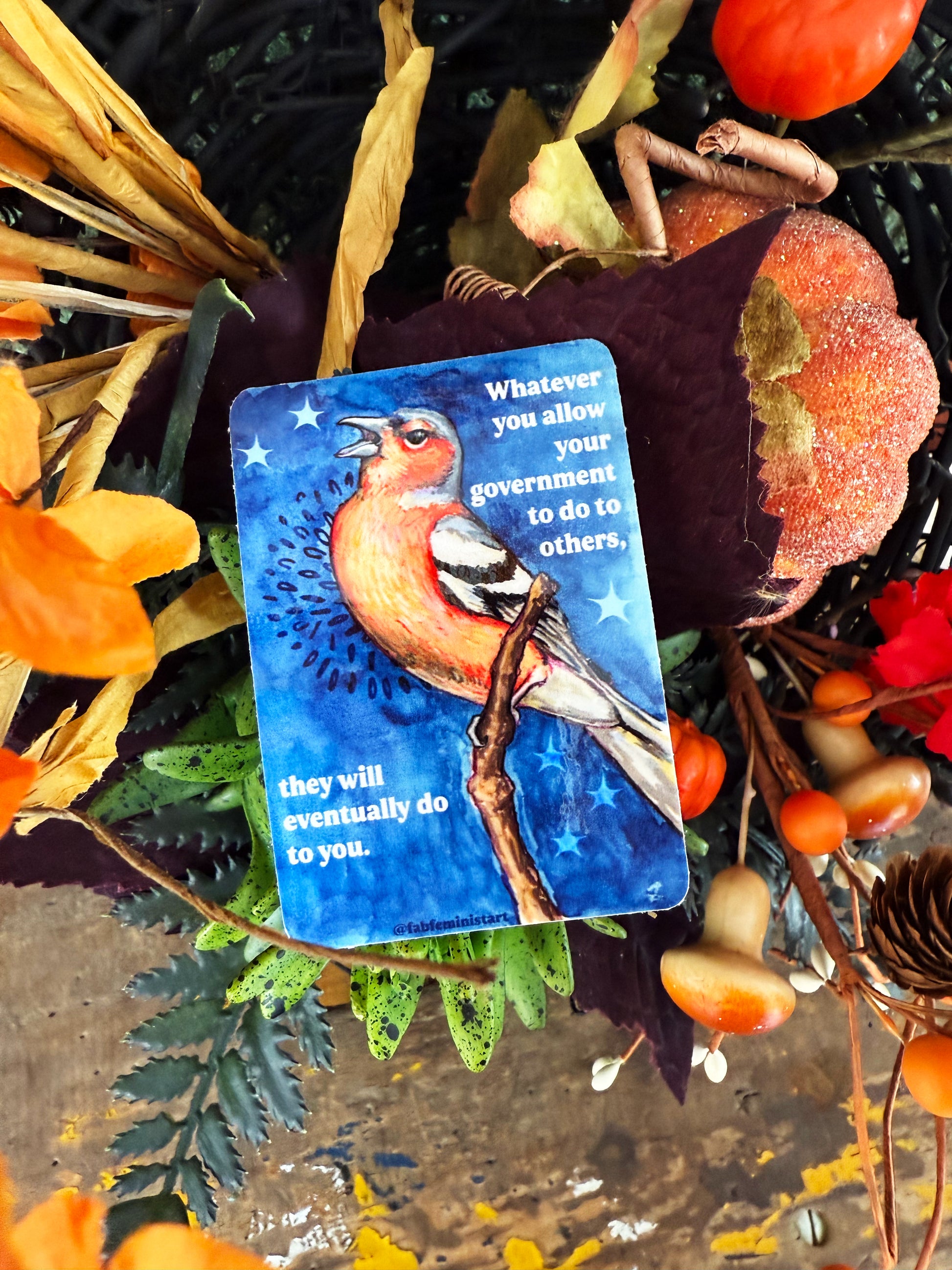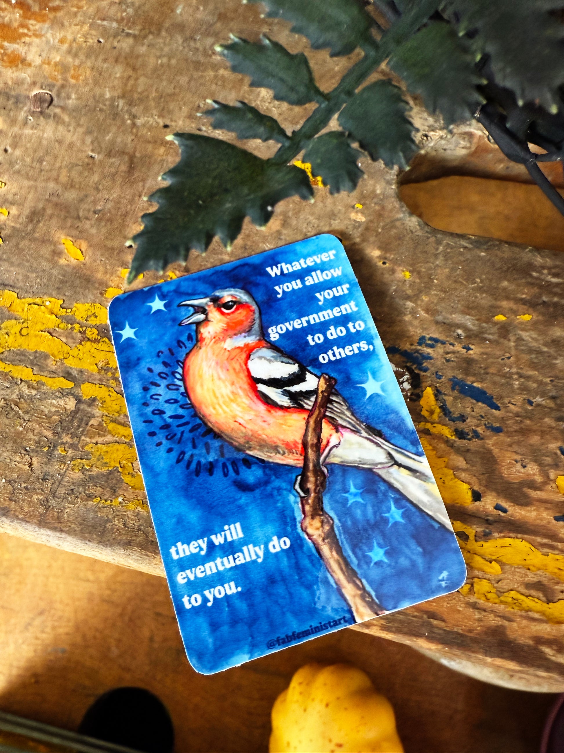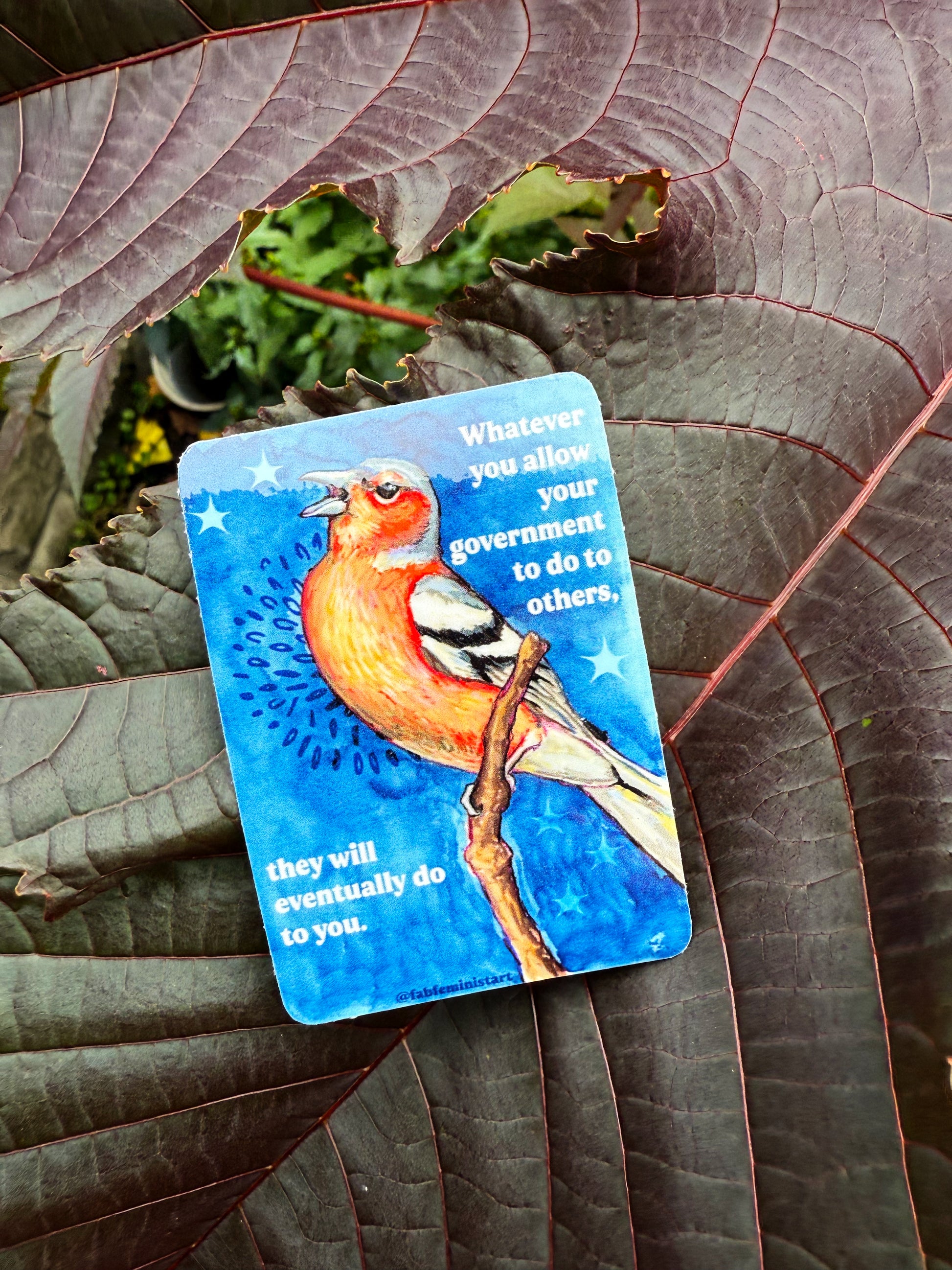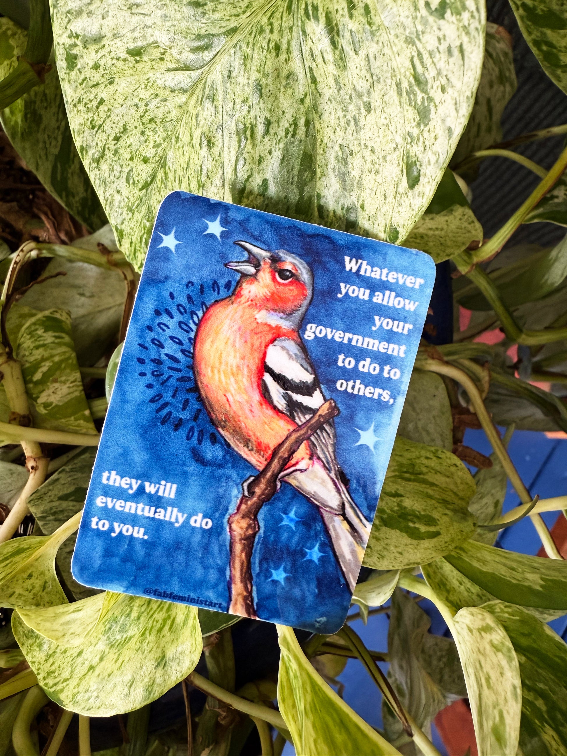 Whatever you allow your government to do to others, they will eventually do to you: feminist sticker