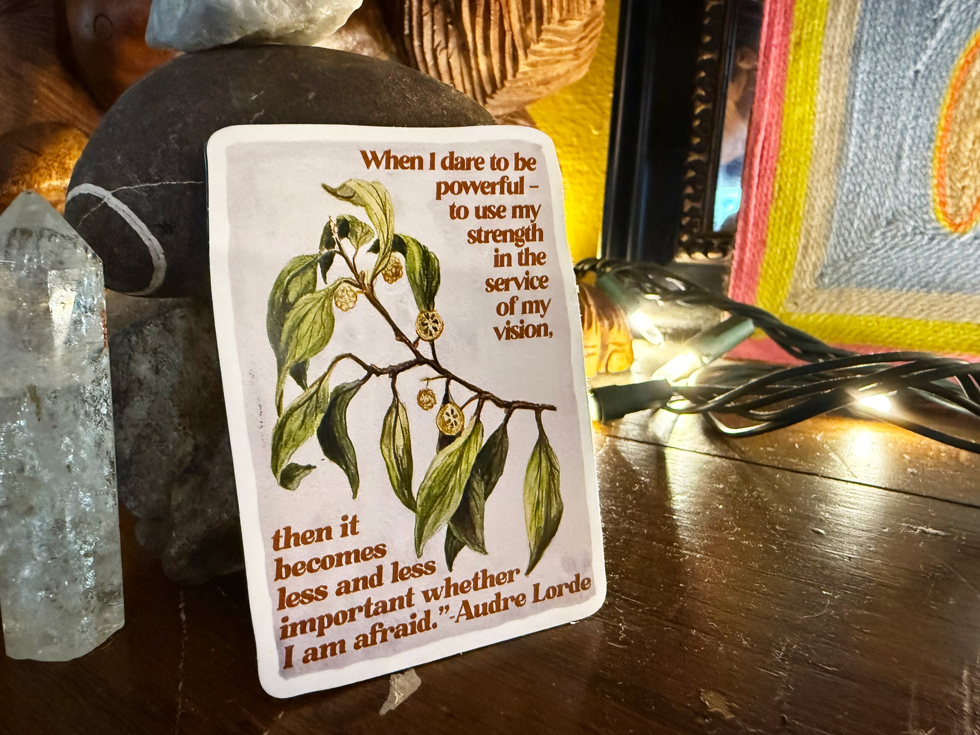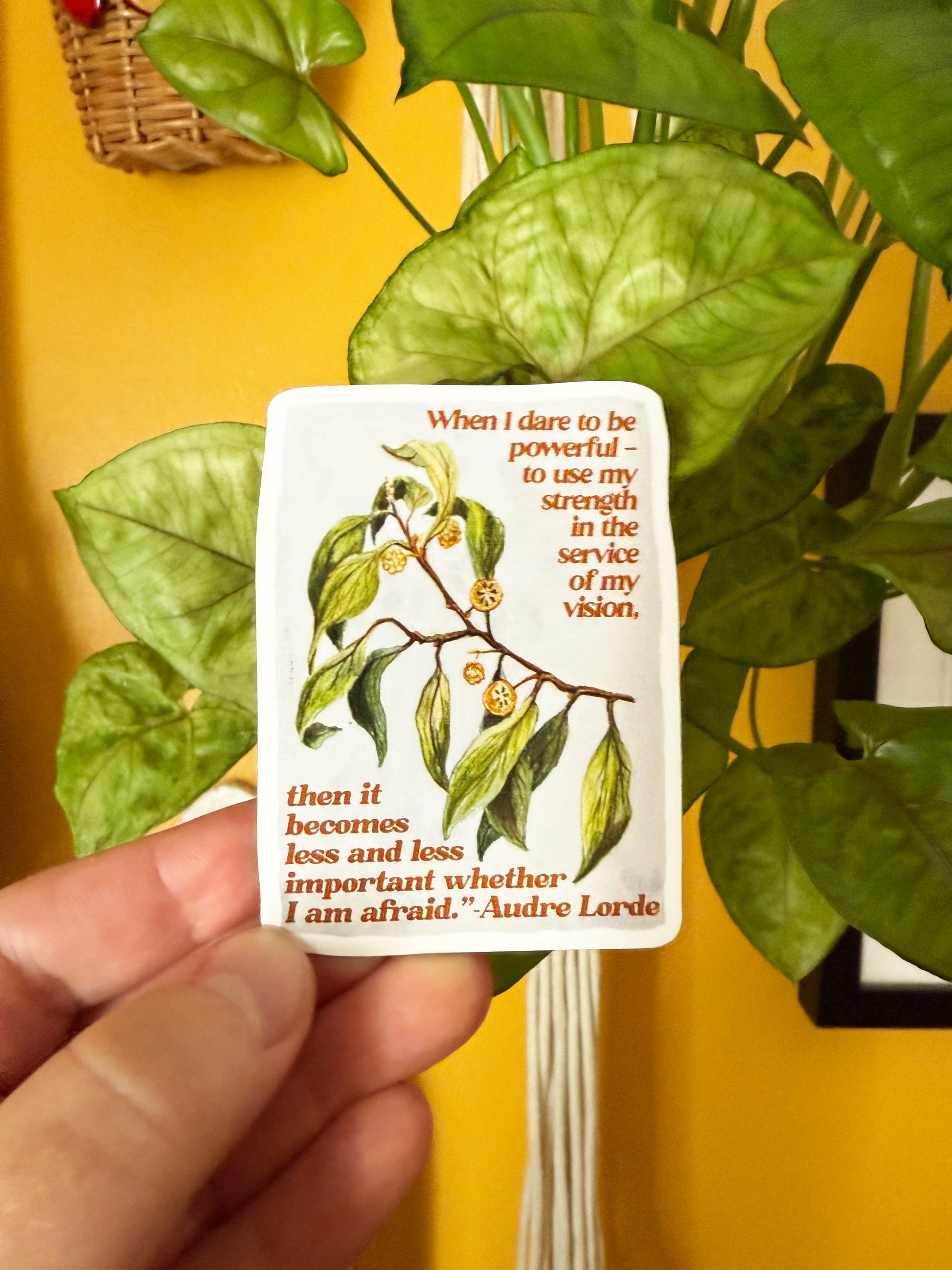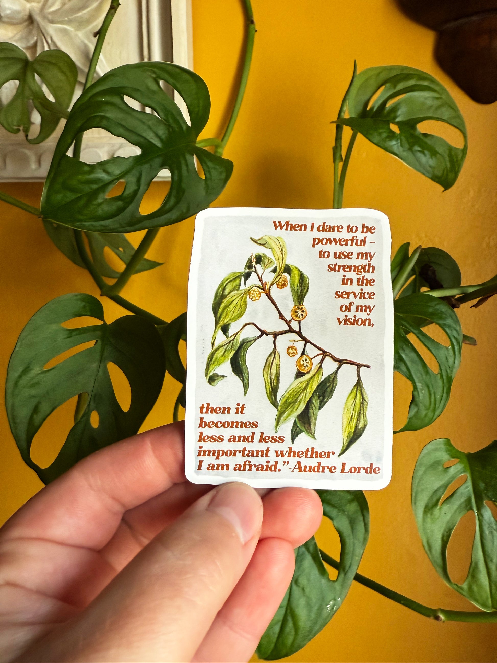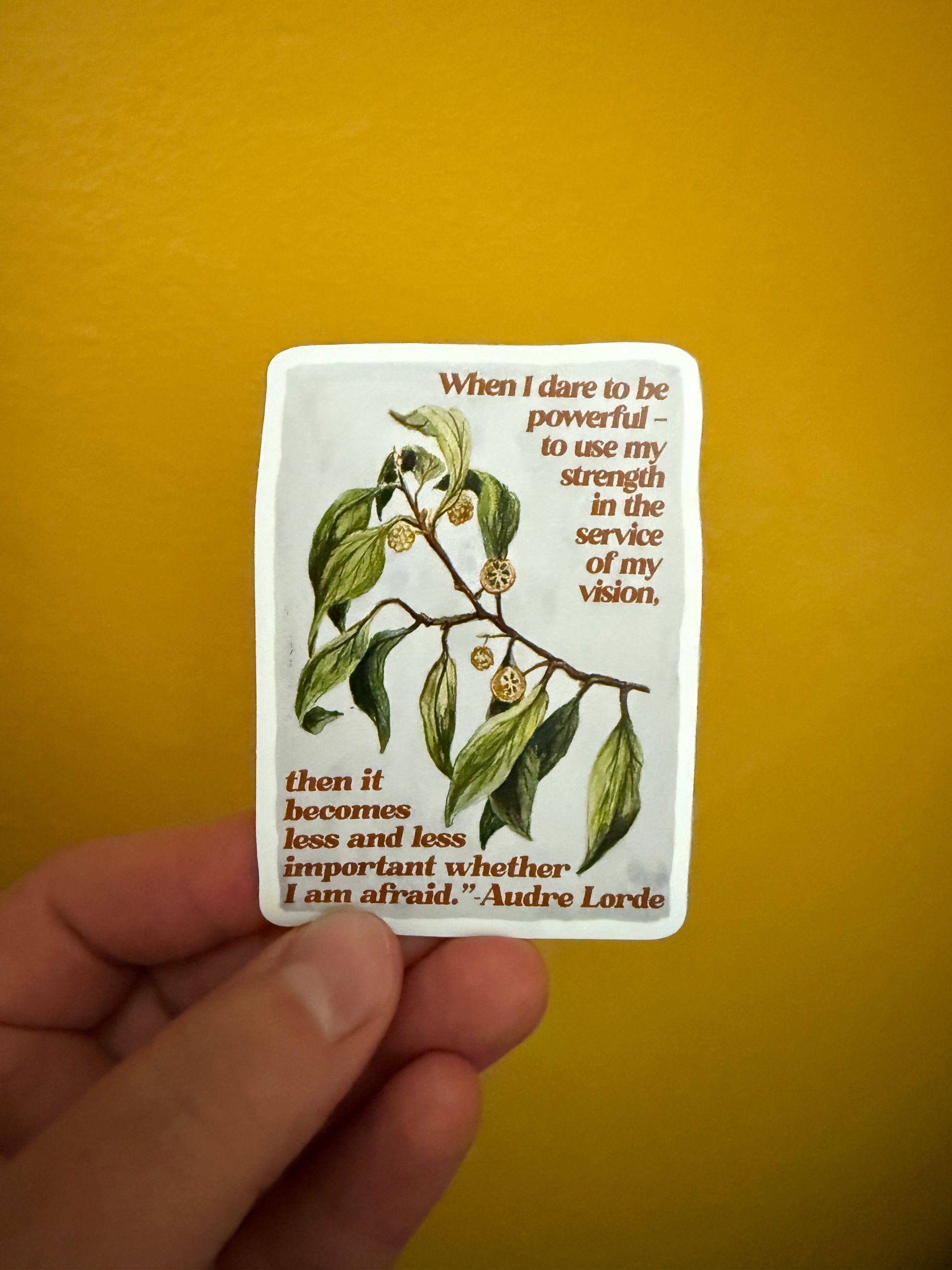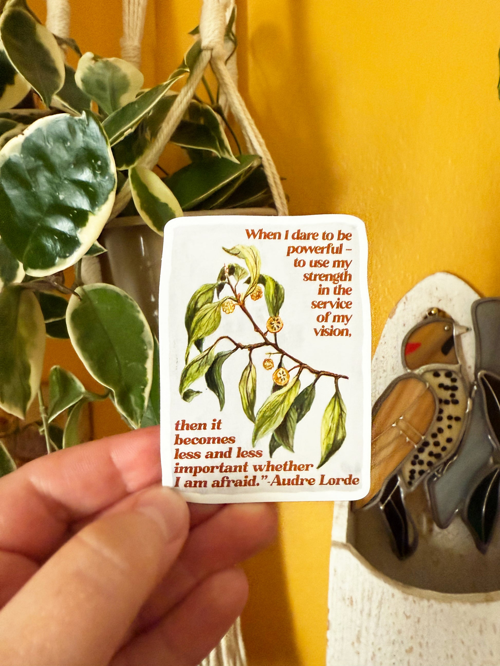 When I dare to be powerful - to use my strength in the service of my vision then it becomes less and less important whether I am afraid, Audre Lorde: Feminist Magnet
